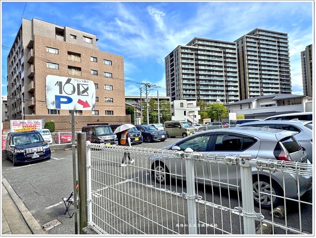 從生活雜貨店 「B・B・B POTTERS」 出來後,我們一路散步過來,氣氛很舒服,沒有觀光區的喧囂,只有當地的日常節奏。正想著 16区 究竟會是什麼樣子時,遠遠就看到一片停車場,而且不是普通的停車場,是「甜點店居然需要指揮員」的那種規模。