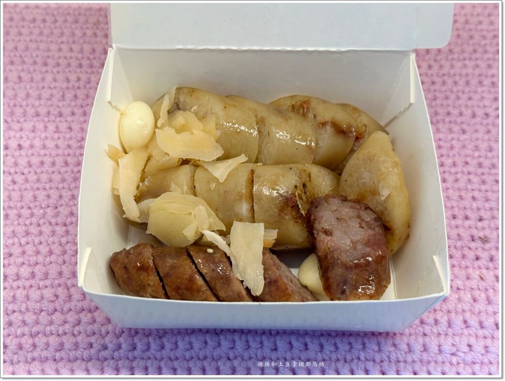 店家自製的手工香腸是我喜歡的口味,選用梅花肉,有一點五香、高粱酒香,吃起來不乾澀挺緊實也不會膩口。