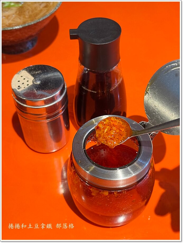 整體味道我覺得偏清淡,不過可自行添加黑白胡椒或是黑醋調味,喜歡吃辣的推薦加一匙阿蘭嬤自己炒製的辣椒油,味道馬上變得更有層次。