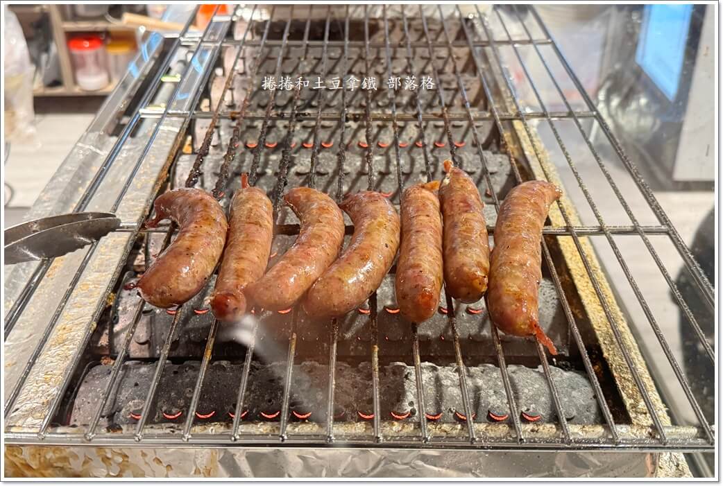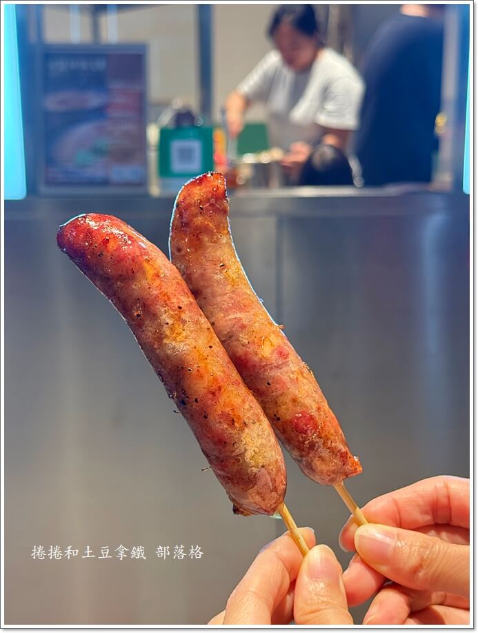 香腸裡面吃得到蒜頭和黑胡椒,肥肉瘦肉比例剛好,很香,一口咬下馬上噴汁又滴油。腸衣是天然腸衣,口感自然,一吃就讓我印象深刻,很好吃。
