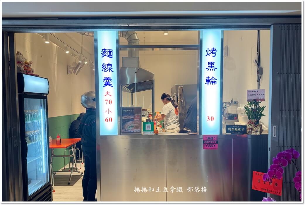 店面不大,裡面僅能容納2桌座位,騎樓也只有兩桌,整體乾乾淨淨,線條簡單,沒有硬要做舊,也沒有多放裝飾,跟你印象中的廟口麵線攤很不一樣。看得出來是年輕世代在經營的空間。燒烤排煙做得還不錯,入內完全沒有燒烤油煙味。