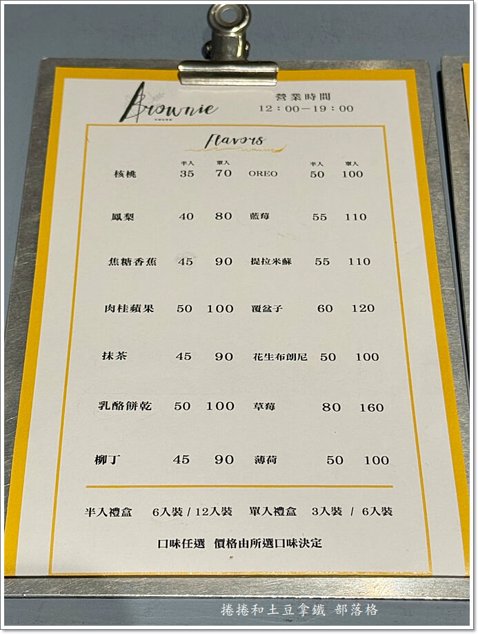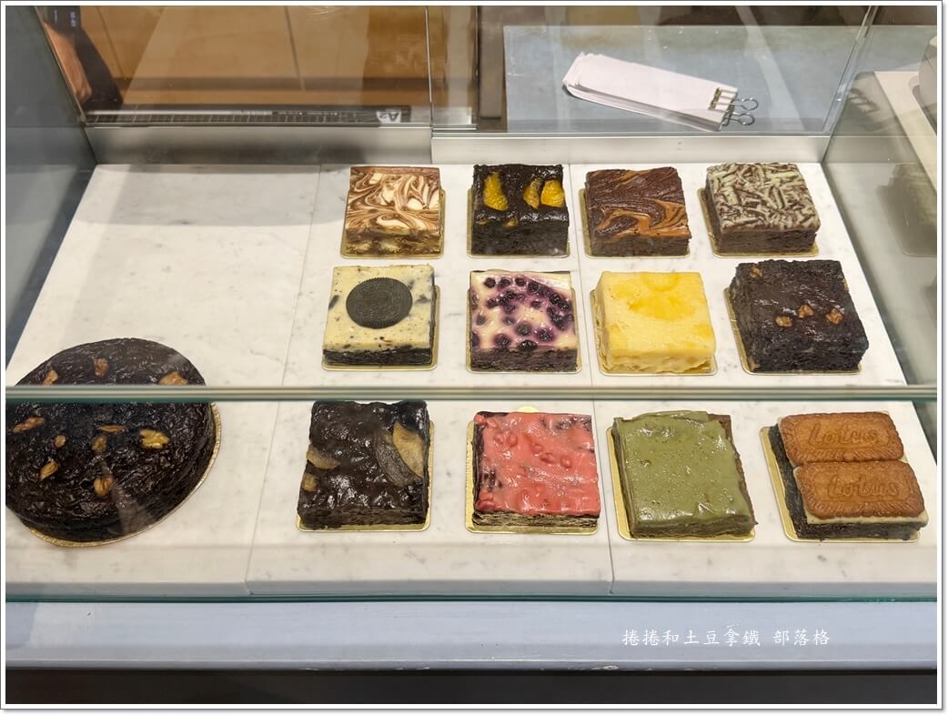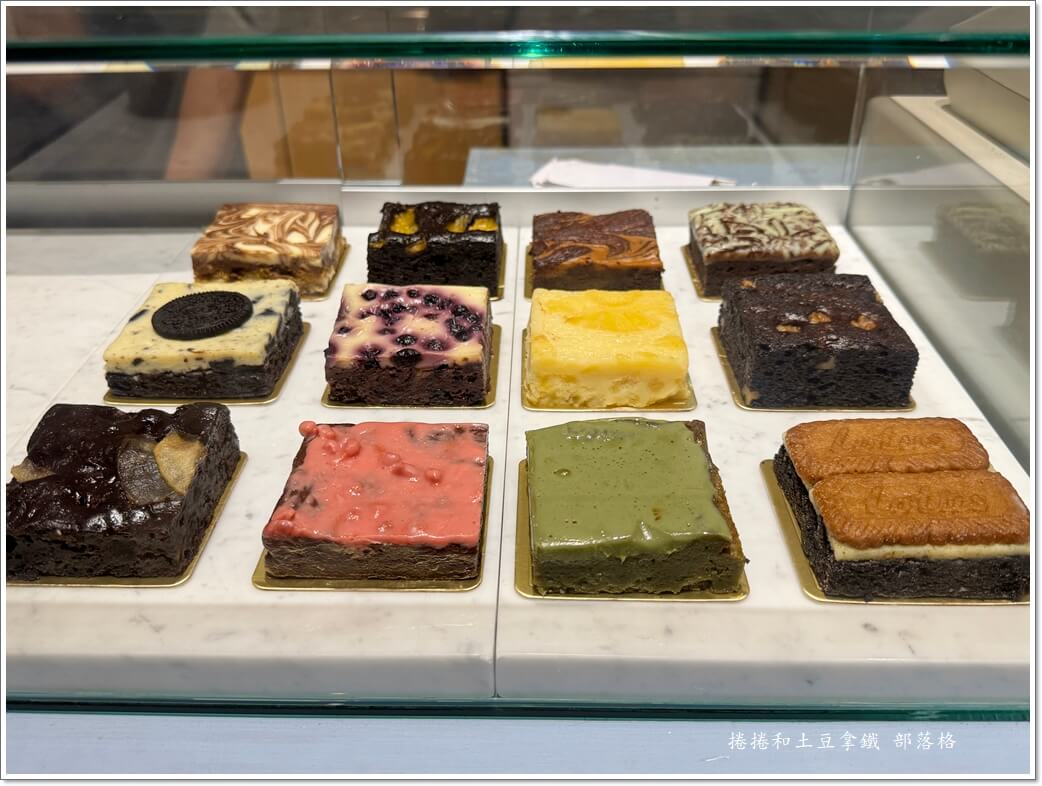 目前僅提供外帶服務,展示櫃中陳列著各式口味的布朗尼,讓人目不暇給。