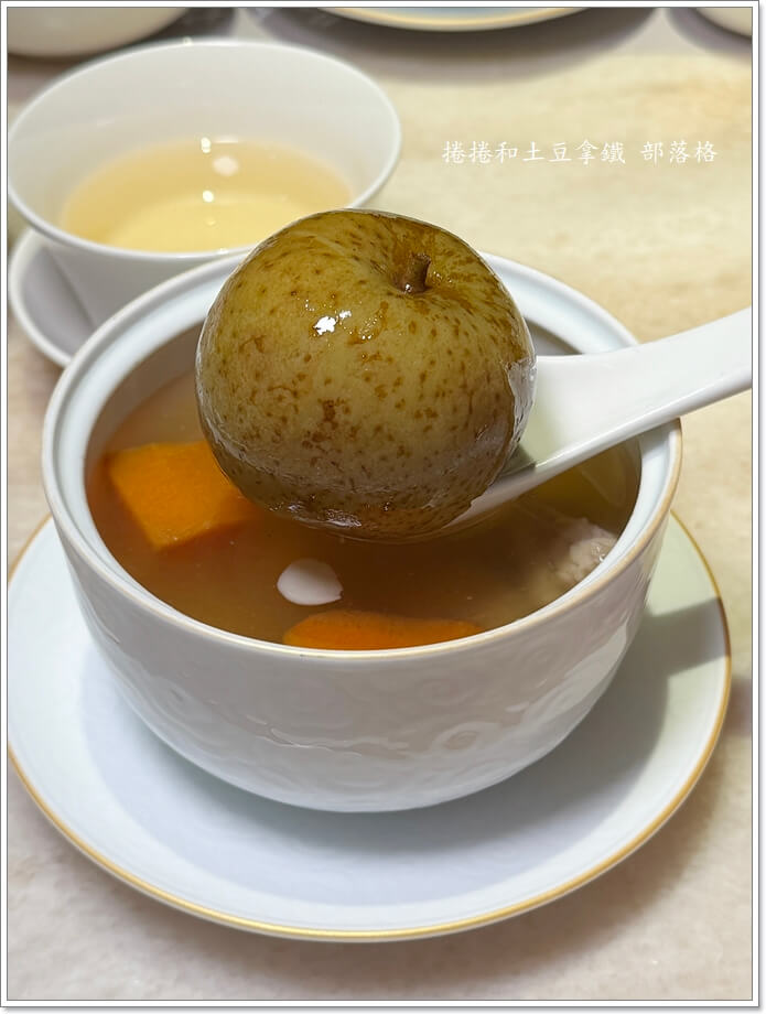 這道菜有一種看起來樸素但其實很費工的感覺。蜜蘋果的香氣剛剛好把豬軟骨的油味拉順,喝到最後都不會膩。平常不太喝湯的人應該也會被收服。