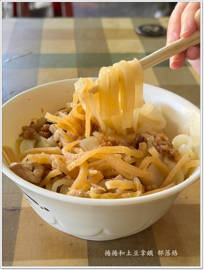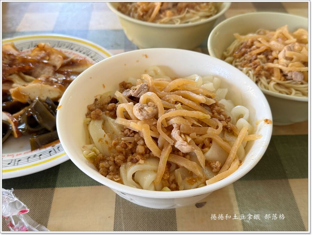 乾板條。板條口感滑嫩、咀嚼感十足,同樣配上肉燥和基本配料。因為調味較樸實,非常適合喜歡 清爽古早味 的朋友。
