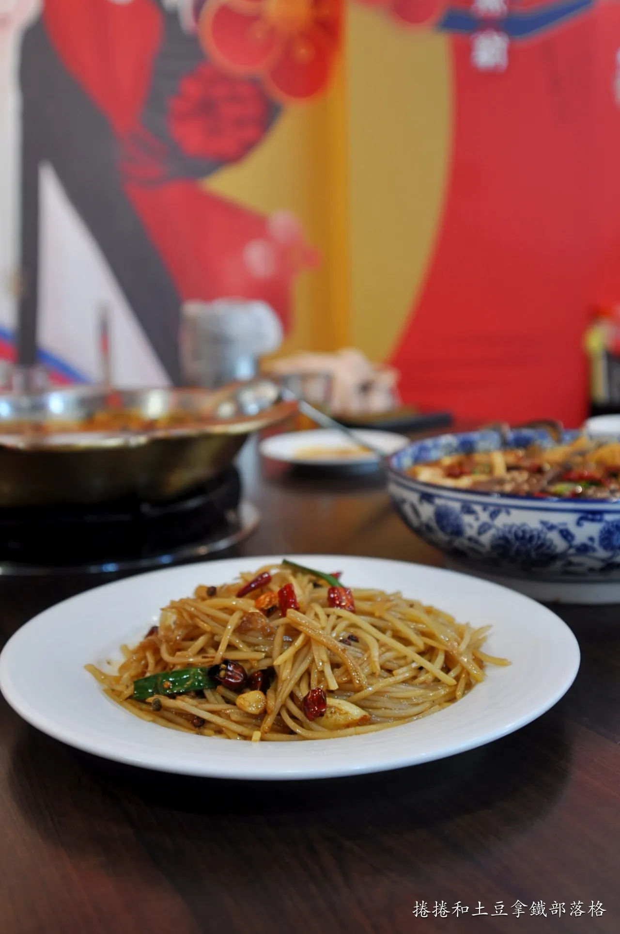 將馬鈴薯切成細絲狀,吃起來脆口,加上蒜、辣椒、辛香料大火快炒,除了酸辣風味,鍋香氣也十足,是一道號稱「白飯殺手」的經典菜餚。光是吃一口我就可以配半碗飯,很開胃!