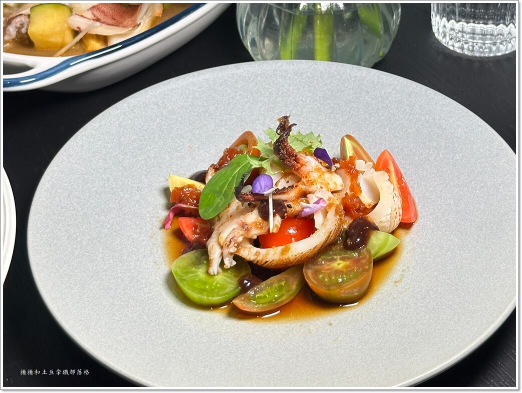 炙燒小卷 / 彩色番茄 / 薑味豆油