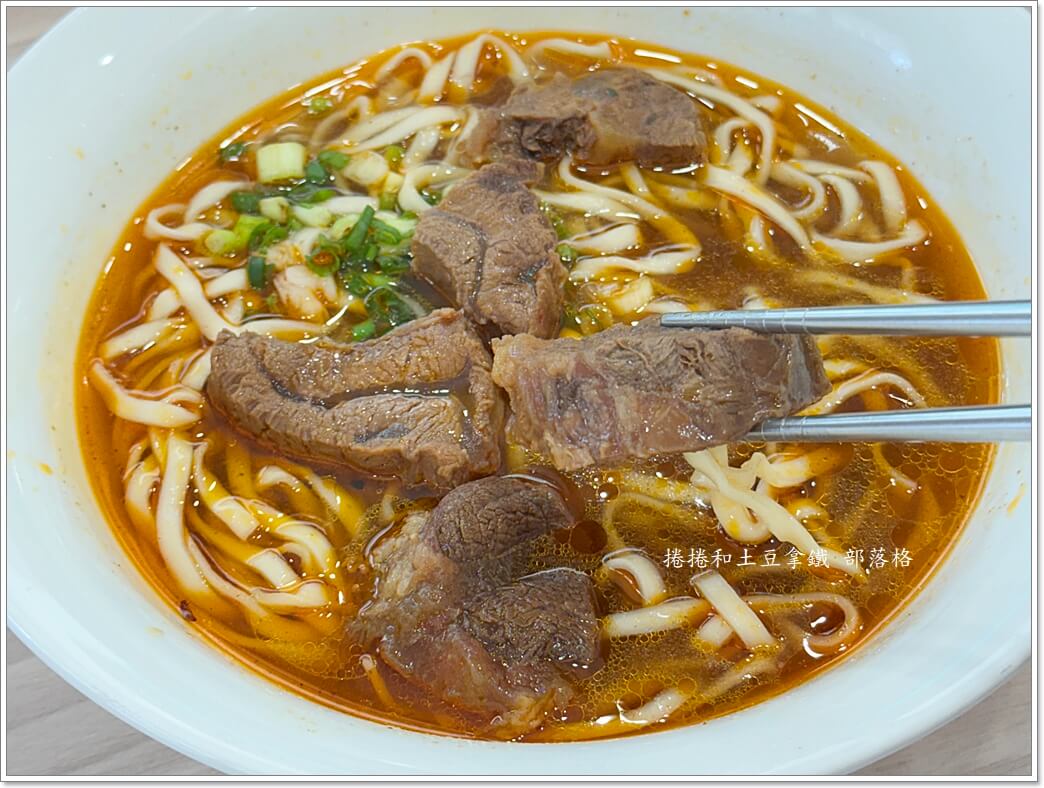 牛肉用的是「牛腱心」,這部位成本比一般牛腱高不少,牛肉大塊、肉質更細緻、筋的比例剛好。口感是那種軟嫩中帶一點彈性,咬下去不乾不柴,整碗麵瞬間升級。