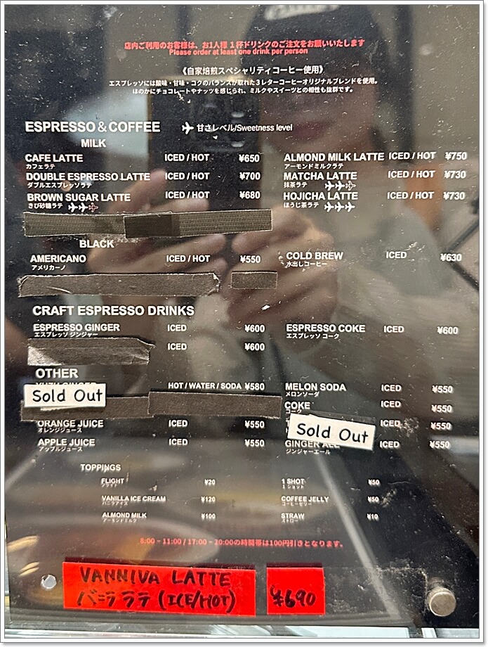 我們這次是晚上六點前來,心想「大家這時應該都在吃晚餐、晚上喝咖啡的人應該不多吧?」結果一推門發現:滿座。最後只能坐在旁邊那排欄杆型的座位,感覺很像坐在機場登機門前等登機(很有主題風)
