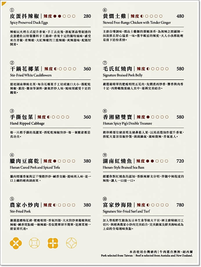 多數人都有選擇困難症的問題,拿到菜單一時之間還真不知如何下手,因此餐廳貼心的幫客人整理了10道必點招牌菜,一目了然,裡面也包含了近期推出的新菜色饗客。