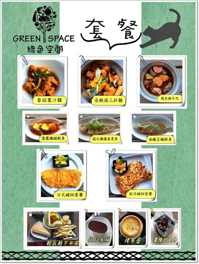 綠色空間餐廳設有露天雅座,顧客能欣賞到四周優美的山林。你可以什麼都不做,只是坐著,看山,看貓,看雲慢慢移動。