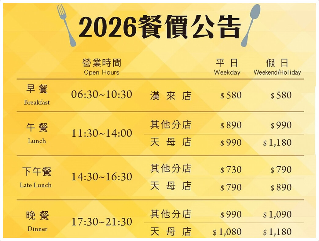 2026年價目表