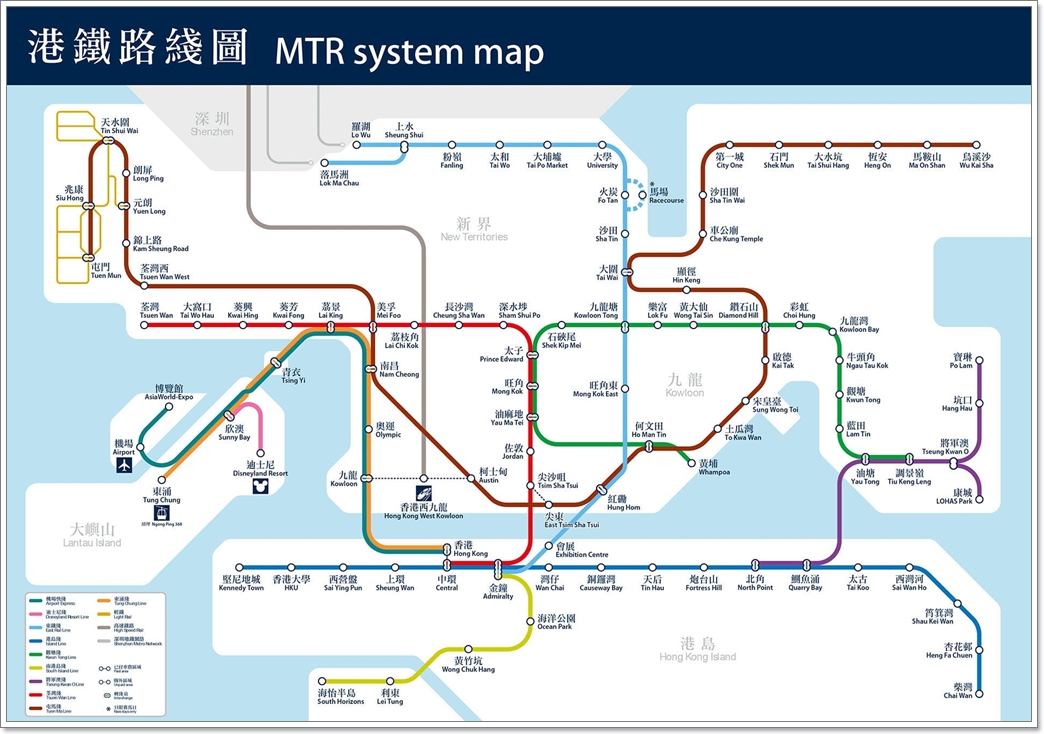 接著我們再對照下圖,從香港地鐵圖來深入認識香港。