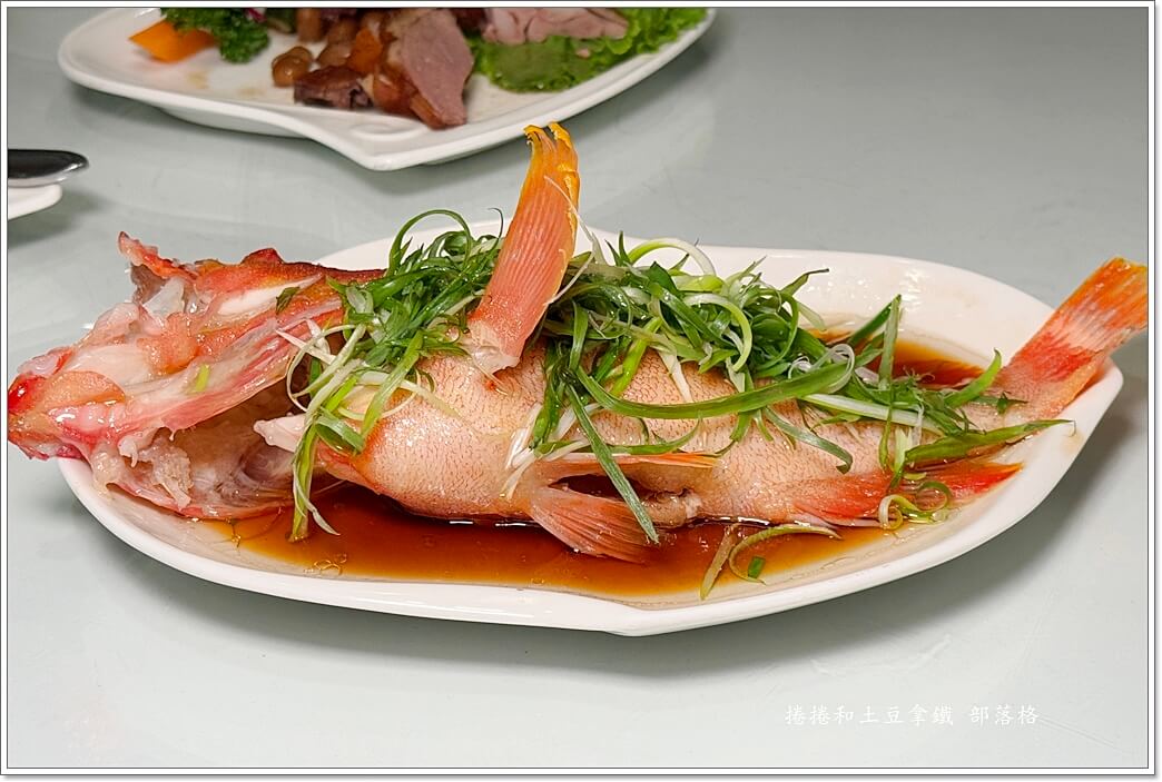 魚皮帶玫瑰紅、肉質細嫩很有彈性,清蒸做法保留魚的鮮甜。