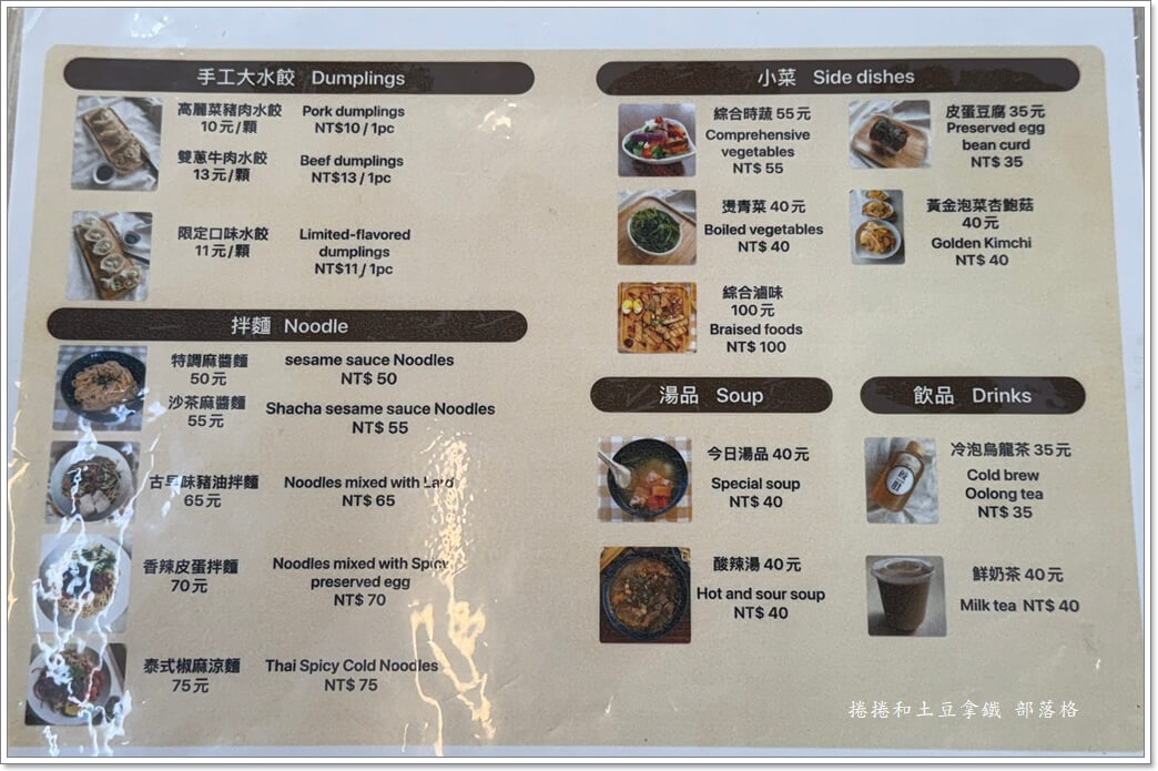 過去專賣水餃及滷味,現在每個月還會推出不同的限定口味的水餃,還有各式的拌麵。