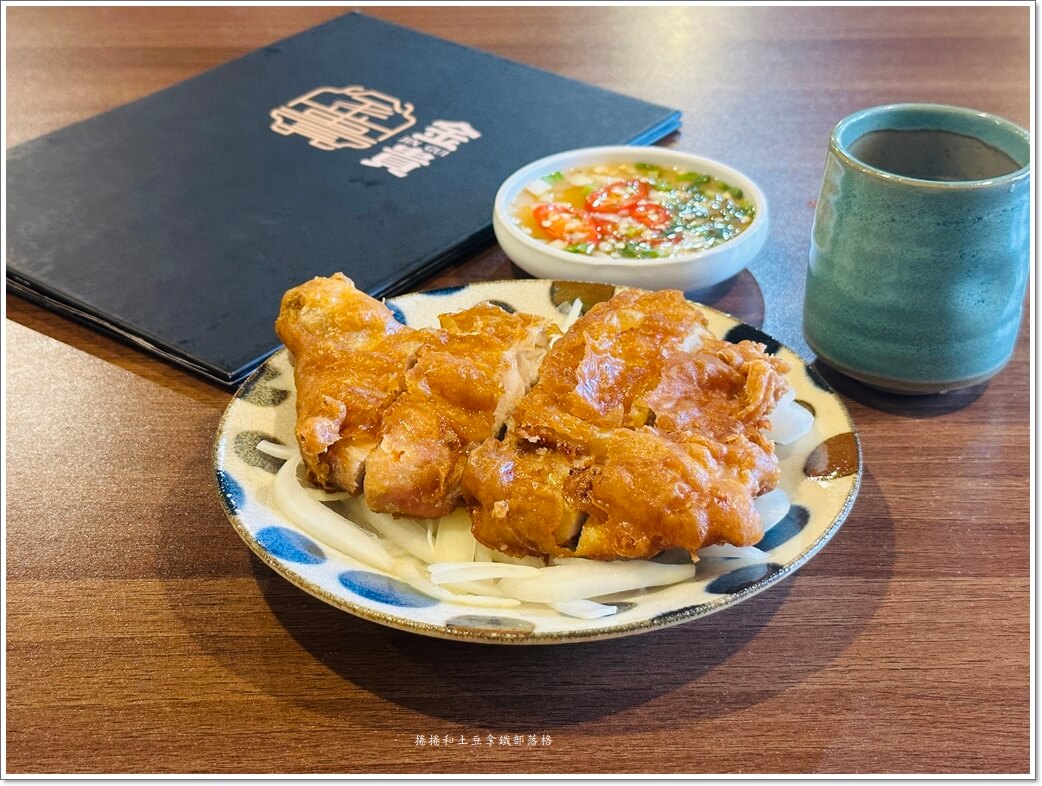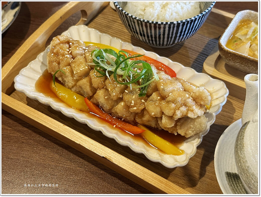 雞腿外層帶著微微金黃,吃的時候沾上一點酸甜醬汁,外皮仍保有酥脆感,但又帶著醬汁的潤度。