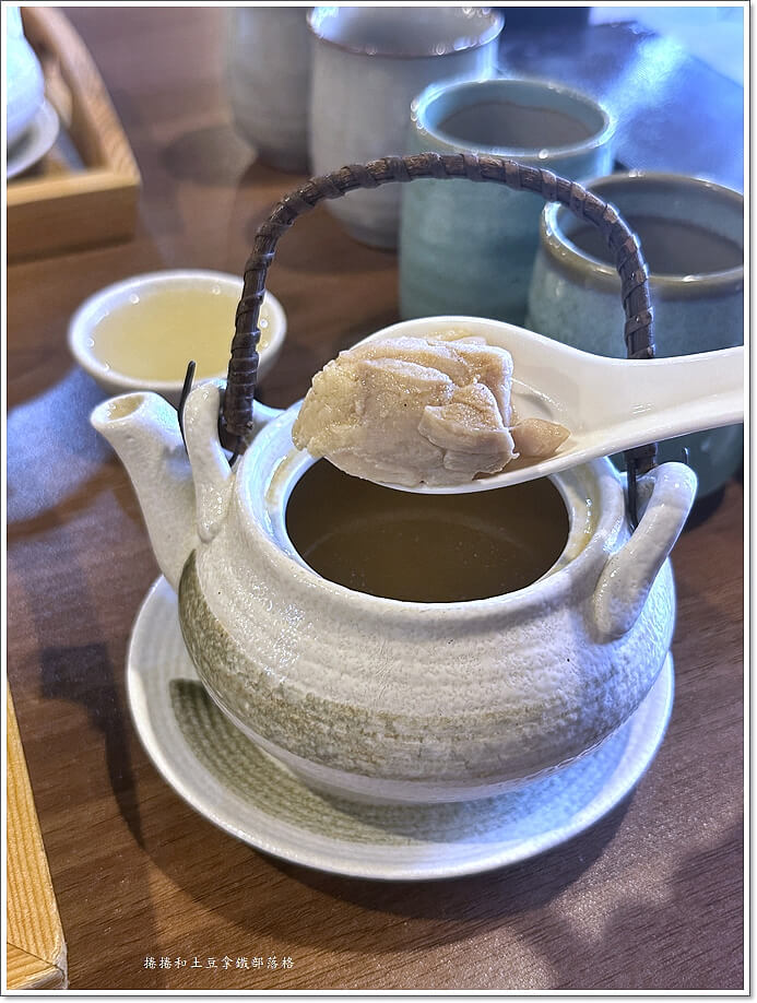 一壺柴魚湯:很可愛,用茶壺裝,裡面是柴魚搭雞肉的清湯風格,倒出來那瞬間很有那種日式餐廳喝小壺湯的儀式感。
