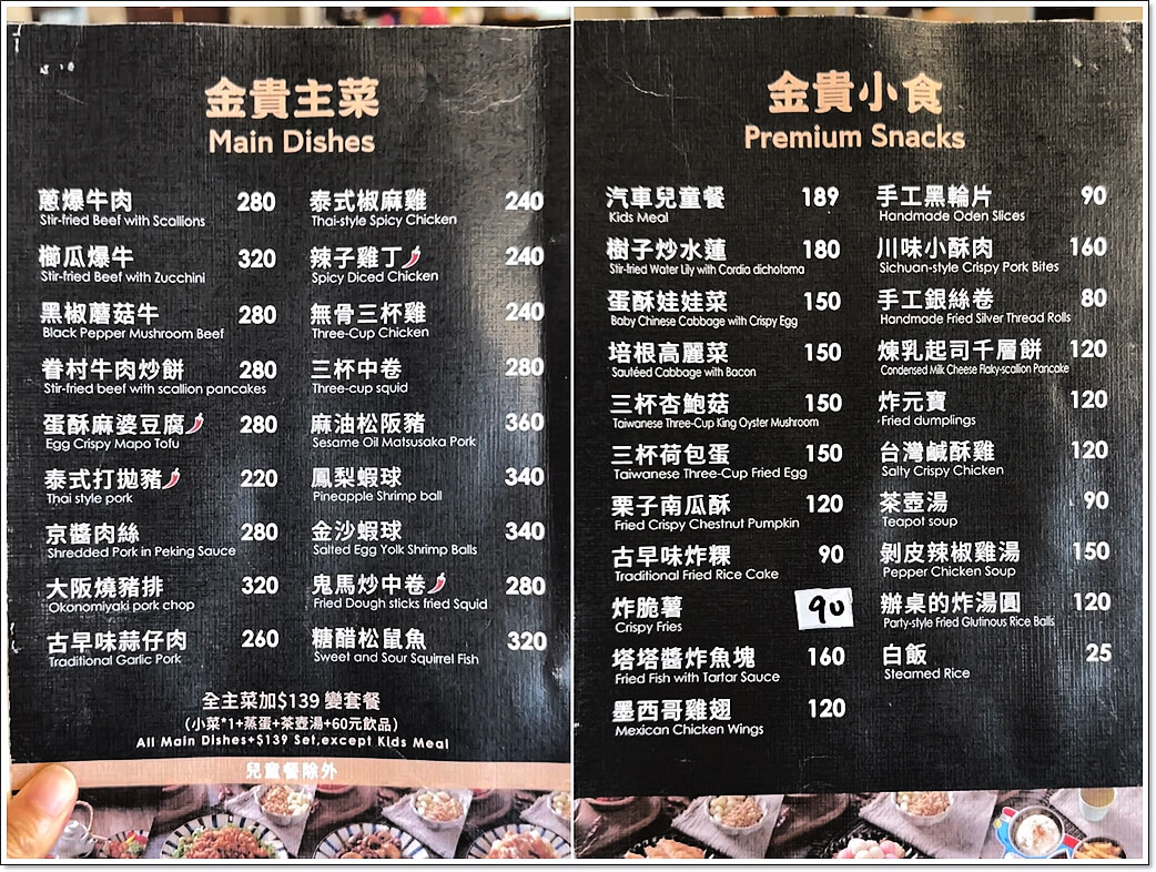 金貴這家餐廳的特色很明顯:把辦桌菜縮小成個人套餐的概念,讓一個人也能吃到像辦桌般的主菜組合,不用揪一大桌就能感受中式料理的完整感。