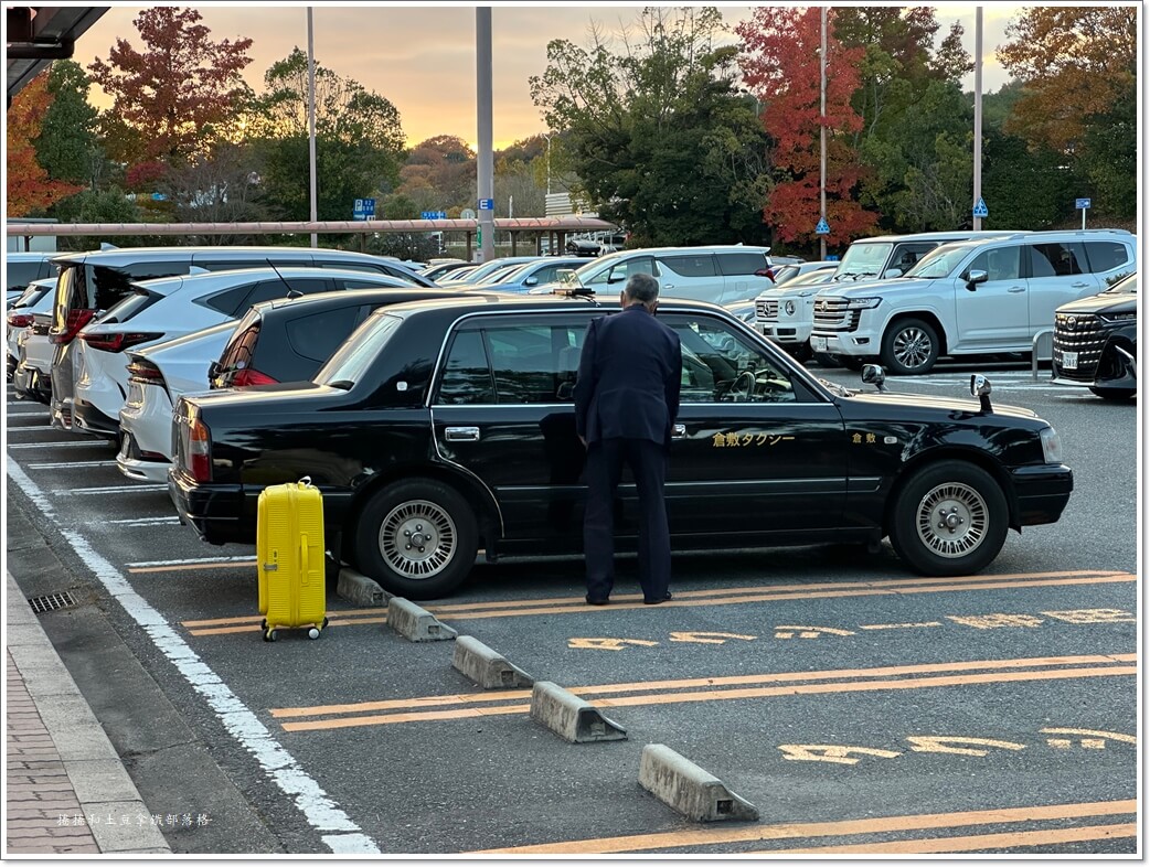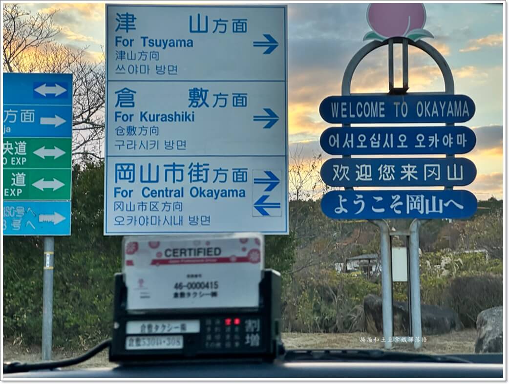 從機場往倉敷的路上,有夕陽、有山景、有城市邊緣的悠閒氣息,心情一下子就沉澱下來。當下真的覺得這次選擇包車是完全正確的決定。沒有轉車的煩躁,也不需要在車站拉行李找方向,只要安安穩穩地坐著,就能把旅程好好開場。