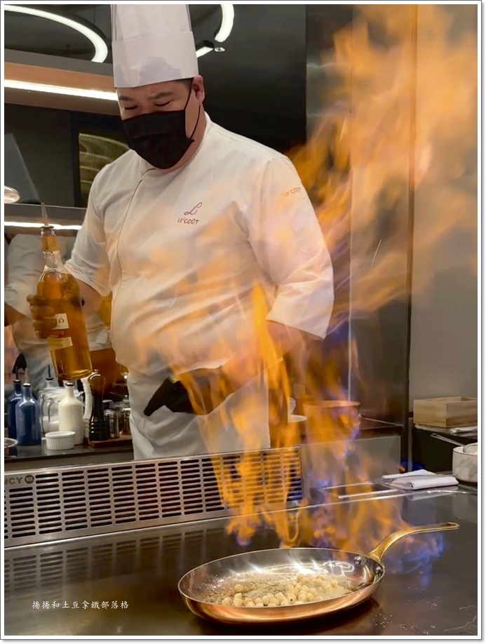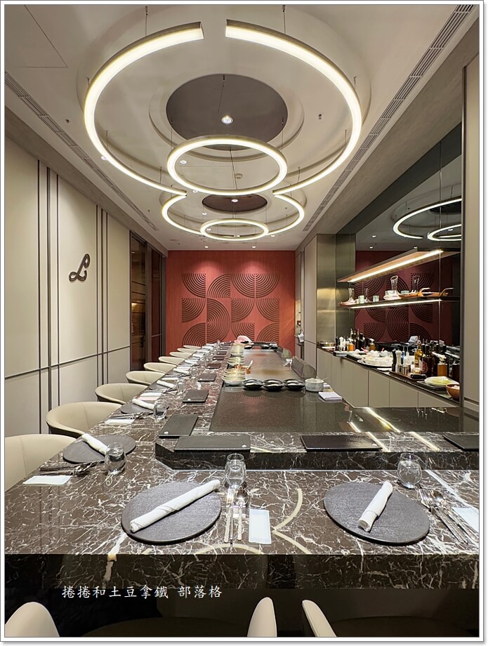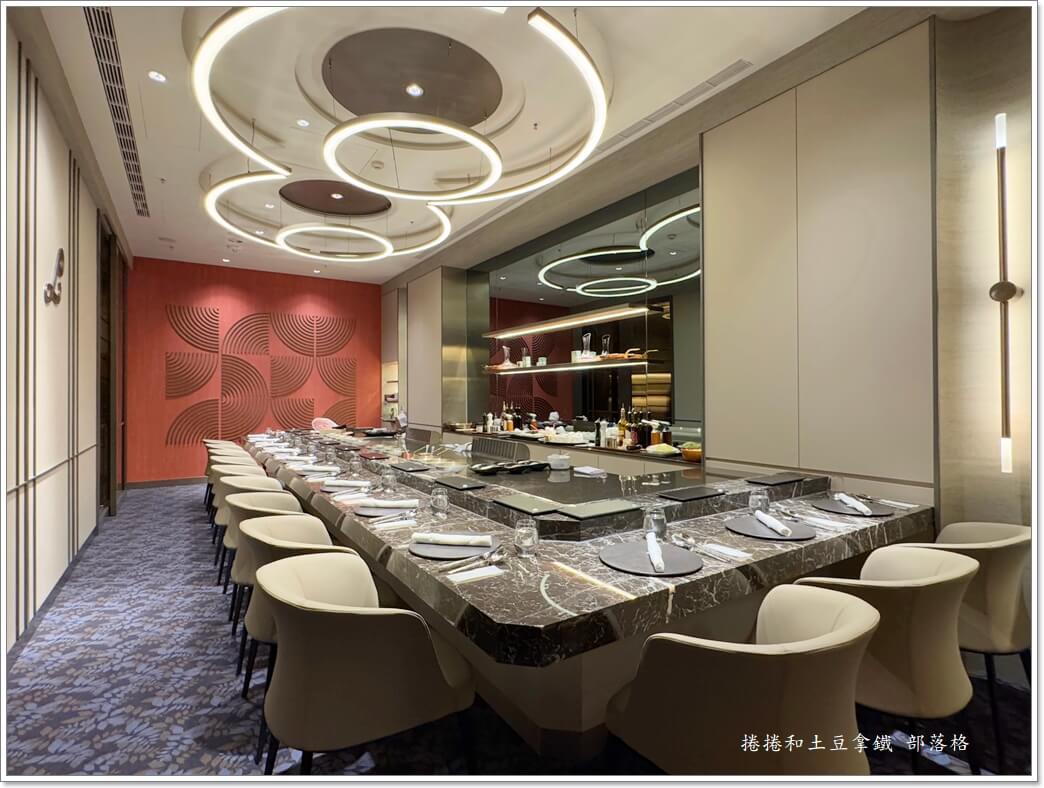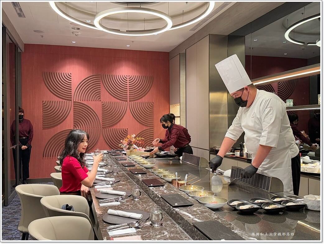 一邊是開放式鐵板席,可以近距離欣賞主廚料理的整個過程,那刀子碰到食材的節奏、鐵板上滋滋作響的聲音,香氣一陣陣撲上來,整個人都被勾進去。