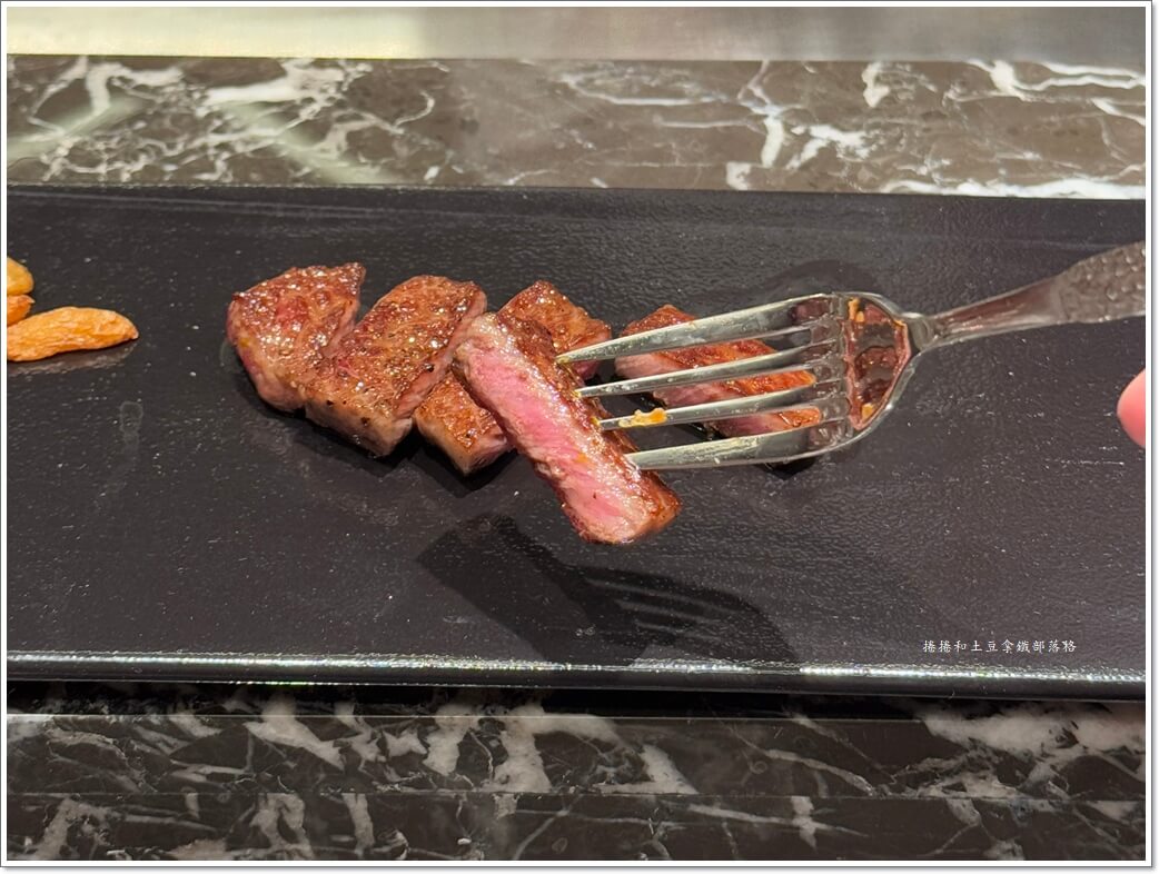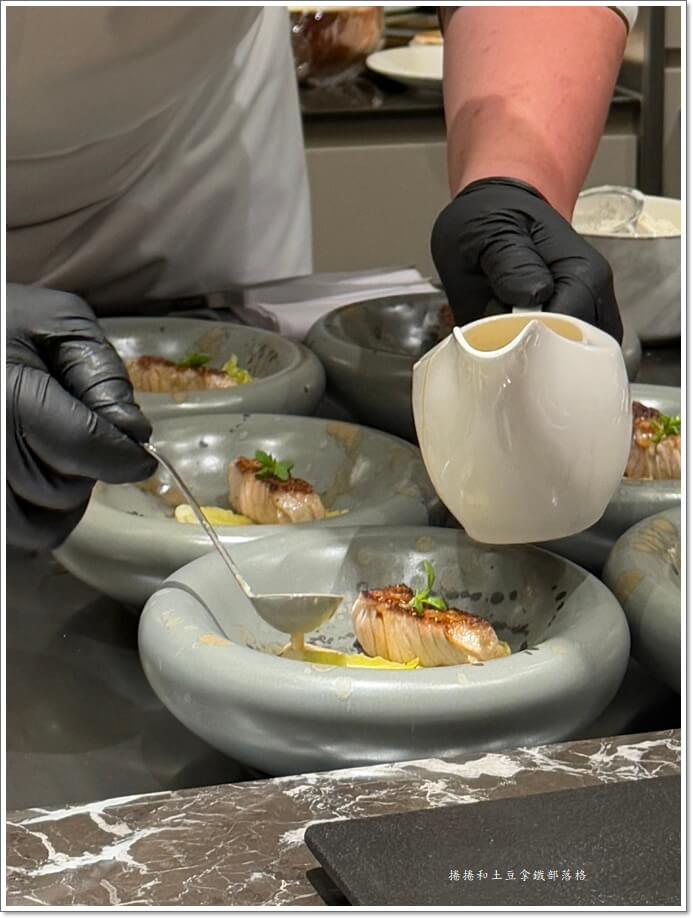 主廚本來是說五分熟,但或許為了表面多一點脆香,他用噴槍炙燒。結果一入口就偏向七分熟,外層香脆,內裡仍有一些嫩度,但比想像的熟了些。