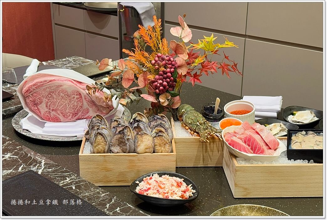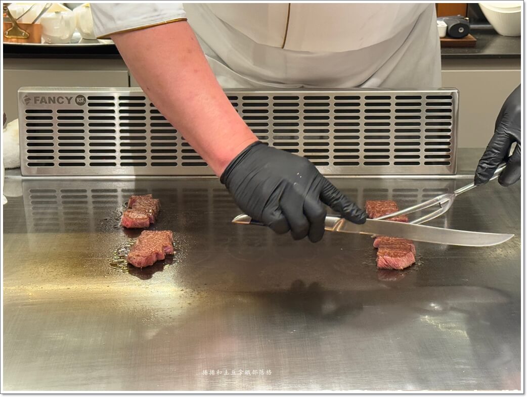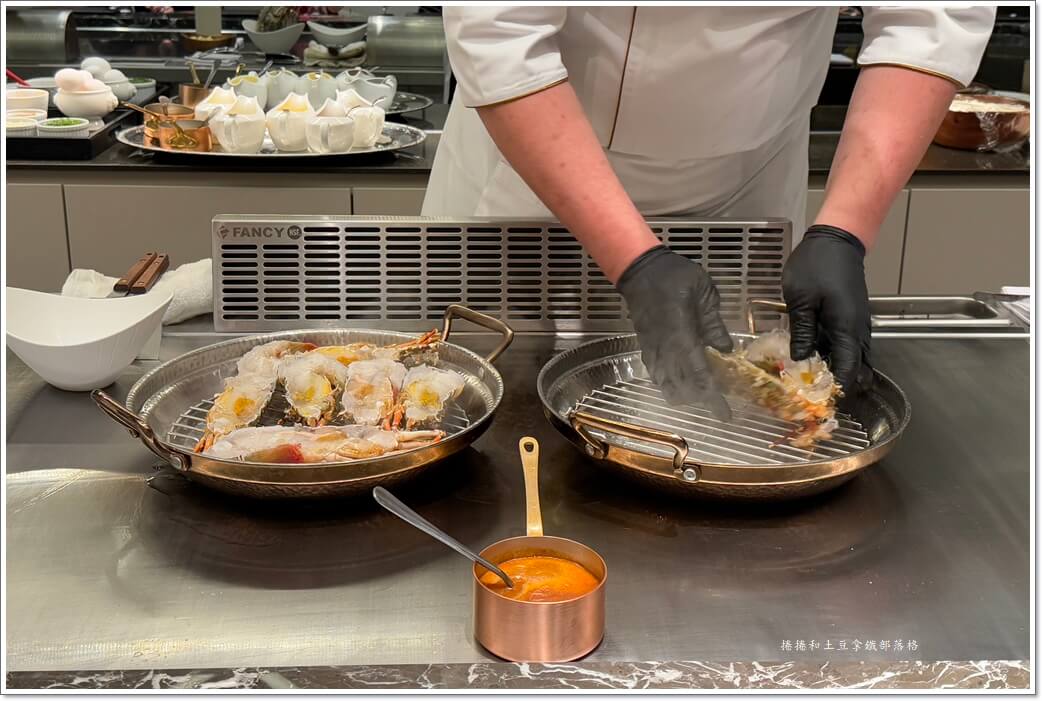 從南非活鮑的彈牙鮮味,到龍蝦的海洋甜香,再到日本A5和牛的油花與細緻口感,每一樣都是夢幻級的頂級食材。更精彩的是,這些食材不是擺著給你看的,主廚會現場實演烹調過程,刀工、火候、香氣和節奏感,全部現場呈現,光是看就已經是一場表演了。