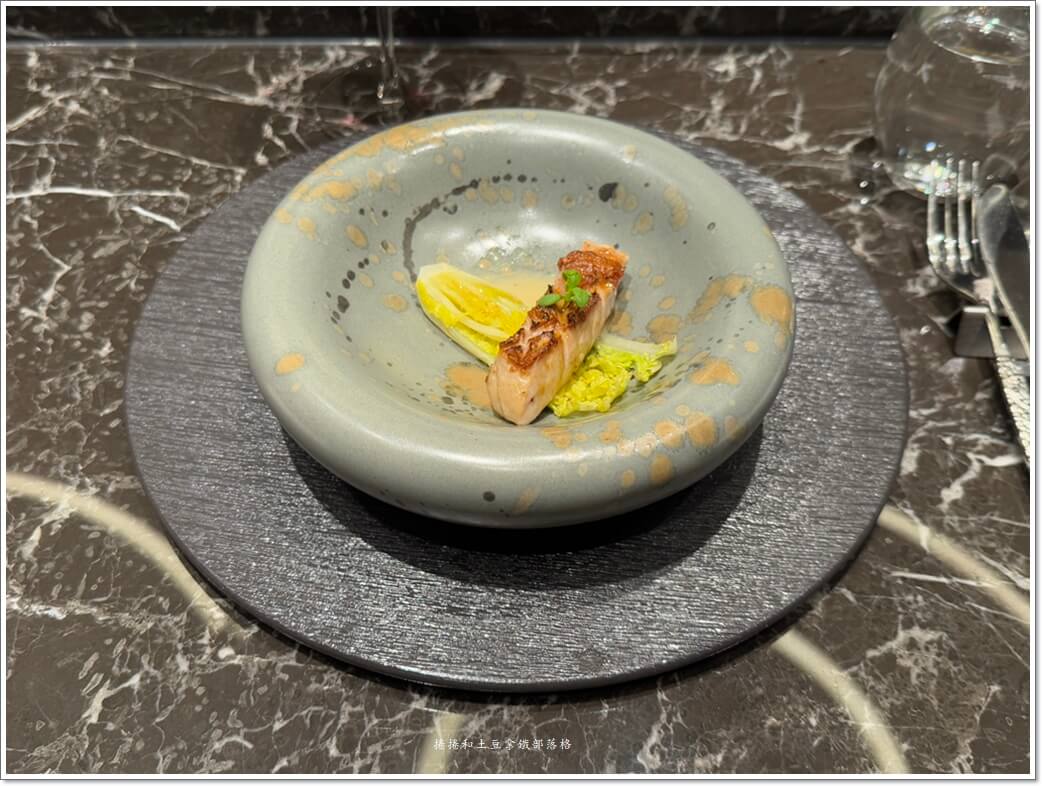 黃鰭鮪魚腹脂香十足,煎得剛好,奶油醬油把鮮味鎖得牢牢的。旁邊配娃娃菜,脆嫩清甜,再加一點柚子胡椒的微微辛香,整個口感層次很討喜。吃起來就像秋天的味道,簡單卻讓人舒服。