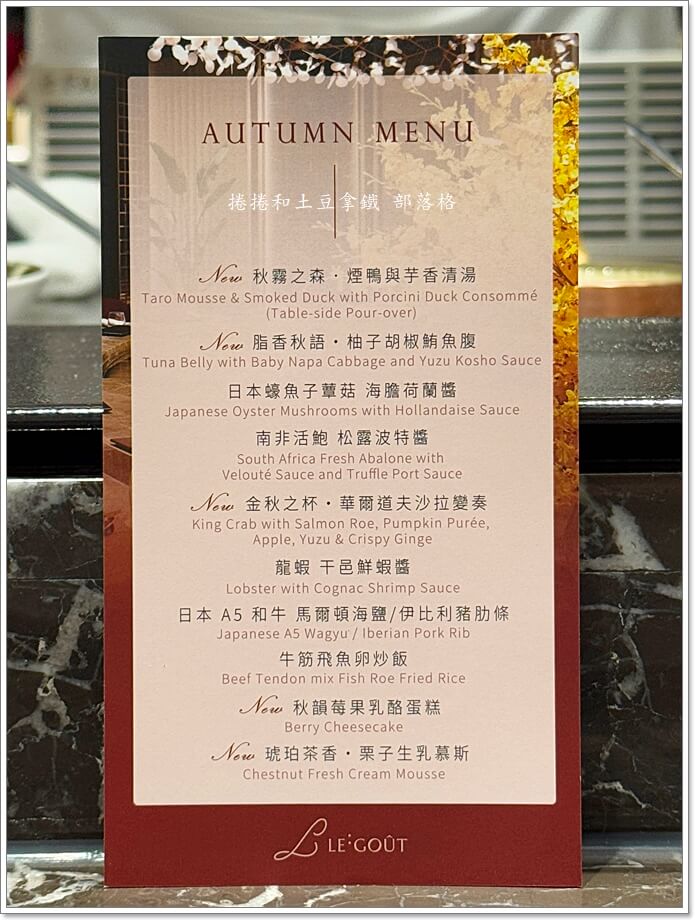 秋季菜單套餐NT$1,650 +10%(午餐、晚餐價格一樣,不會額外詢問要不要加購單點)