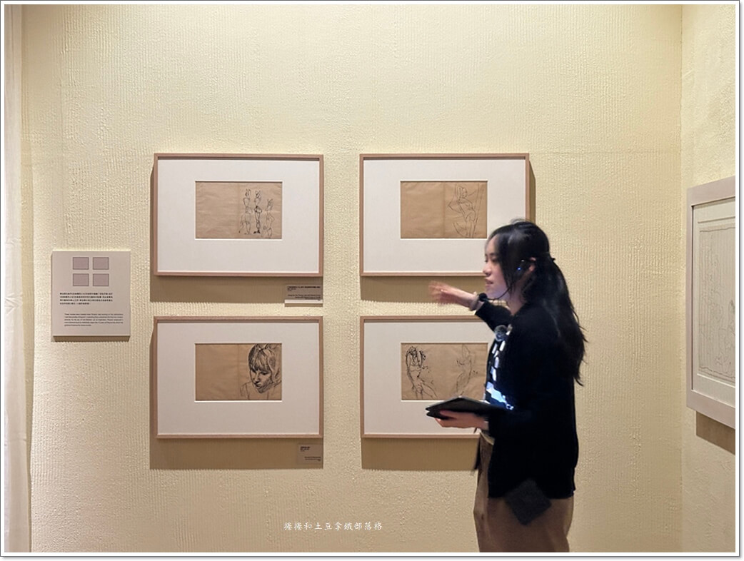 這張是展覽重點展品之一:畢加索為伴侶創作的《身穿條紋緊身胸衣的人物》。