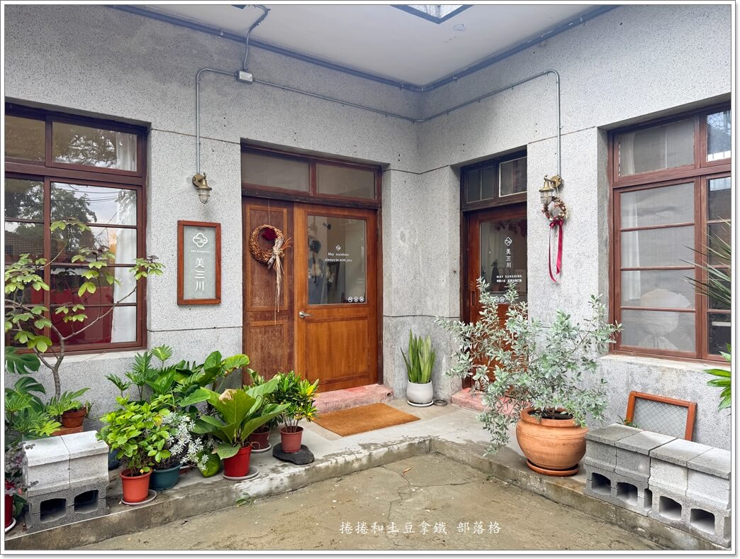 走進建業新村,彷彿進入另一個時間節奏。紅磚牆、老屋屋簷、靜靜延伸的巷道,都承載著過去的記憶;而美三川則在這樣的空間中,以茶香、甜品與花藝,為老眷村添上一份溫柔而細緻的當代氣息。