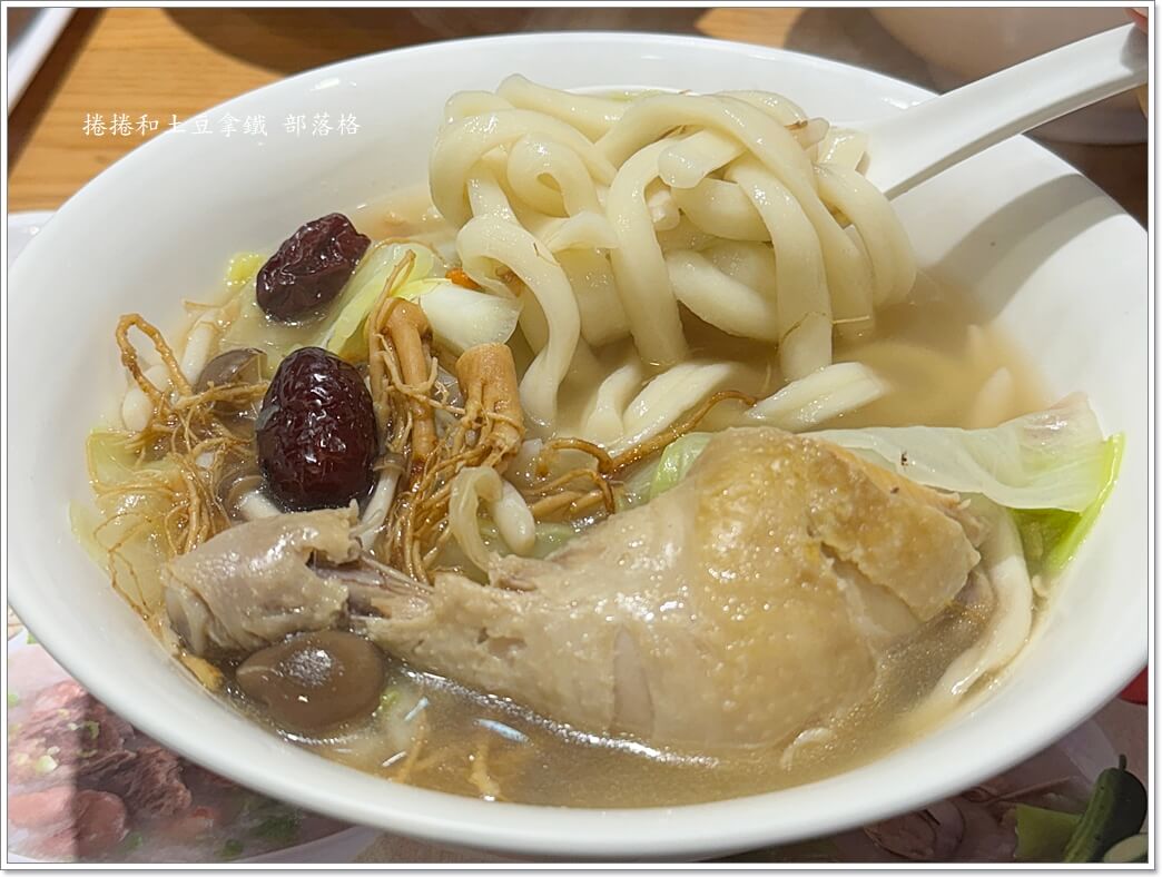 這道煨麵沒有過重的藥膳味,刀削麵條口感有勁道,吃來每一口都是真材實料。