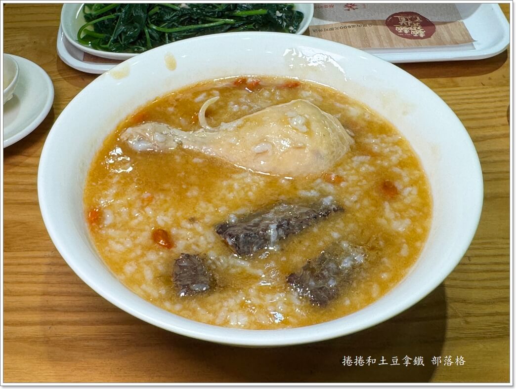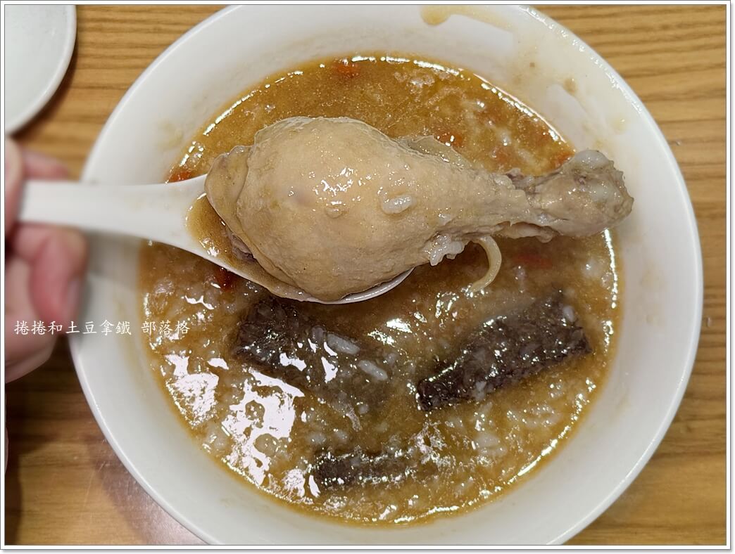 這碗季節限定的爆薑麻油雞粥一端上來,那個麻油香簡直是靈魂重擊,重點是裡面居然藏了一整隻帶皮雞腿!不是那種虛情假意的雞肉絲喔,是實打實的整隻雞腿,肉質Q彈不乾柴,配上爆過薑的濃郁粥底,喝完覺得整個人都原地滿血復活!