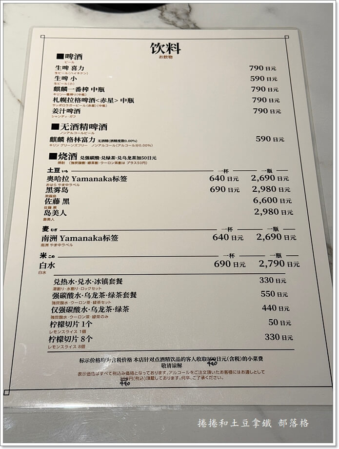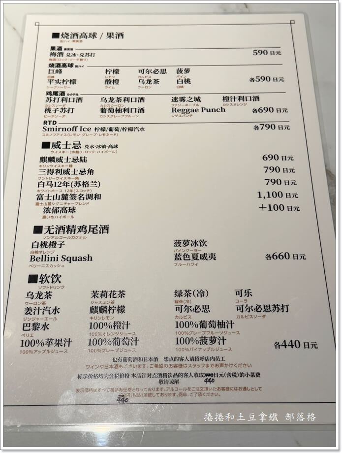 比較誇張的是點酒類的話還要再額外加收日幣440的小菜費。