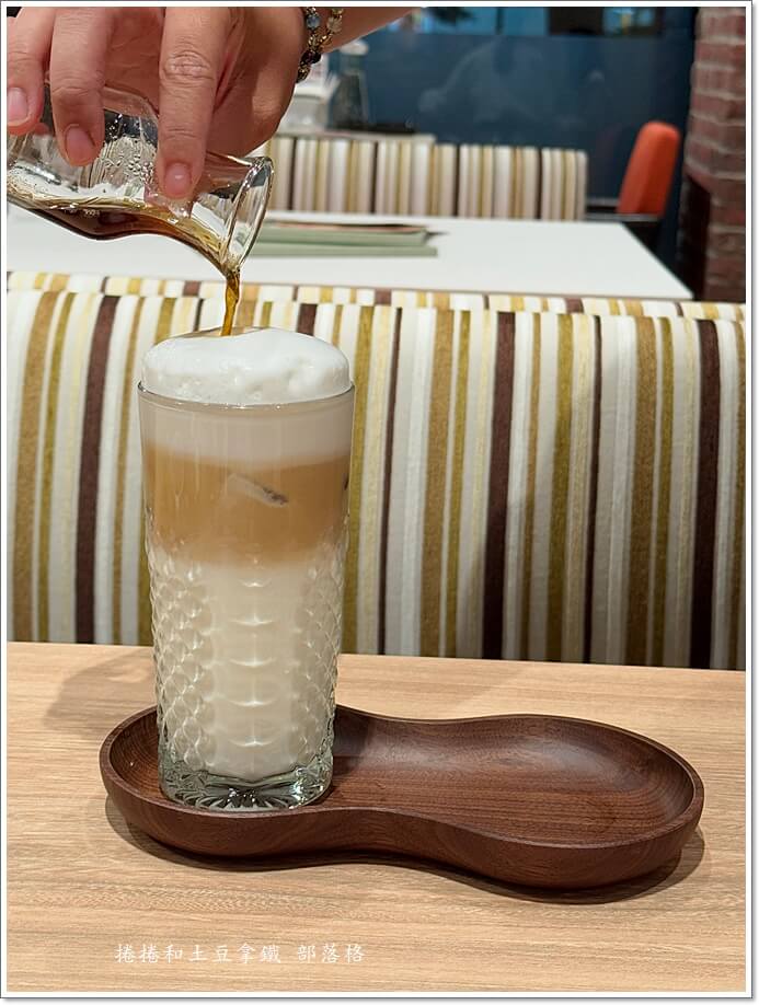 服務生端上來的時候,茶跟奶是分層的,等你把焙茶茶湯慢慢倒進去那一瞬間,奶泡會像被召喚一樣,咻~地往上升!整個畫面療癒到不行。