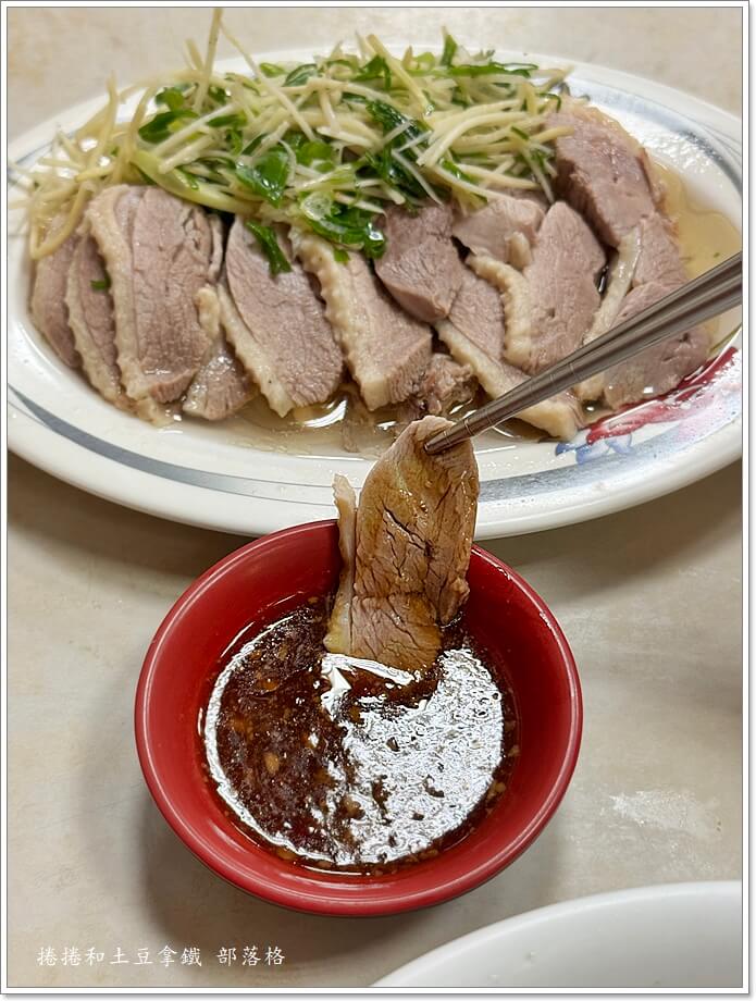我點的是鹽水鴨肉切盤,本來想點鴨腿肉部位,但老闆說點鴨腿必須點1/4隻鴨的分量,費用約200多元,怕我一個人吃不完,所以建議只能點鴨胸部位。這一份鴨胸切盤稱重後110元。