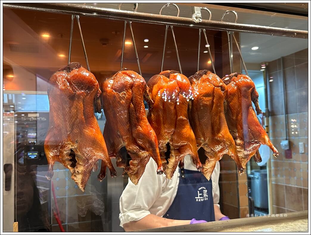 這間位在高雄夢時代藍鯨館6樓的「上菜」片皮鴨專賣店,背景可不簡單。它是漢來美食集團旗下的超強品牌,這間店當年可是帶著「月賣兩千隻鴨」的恐怖戰績南下高雄插旗的。