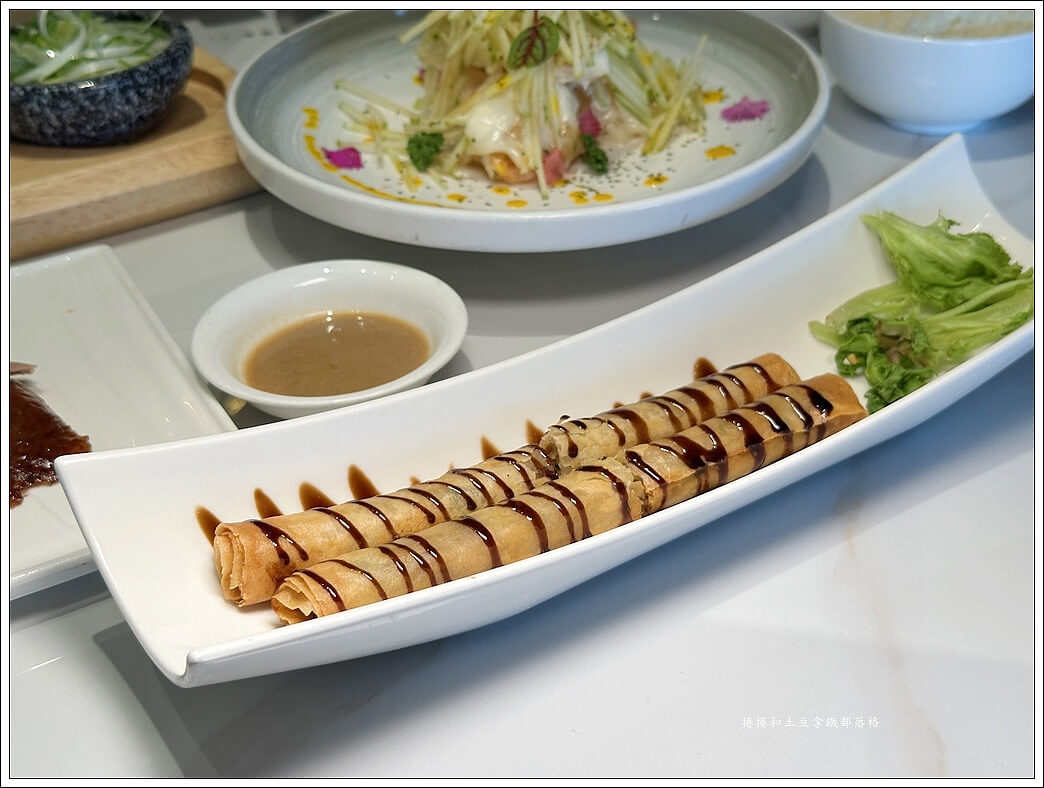 漢來美食多家餐廳的招牌料理。像是脆笛酥,用春捲皮內包裹炒過的豬絞肉、香菇及韭黃,外酥脆內開胃。