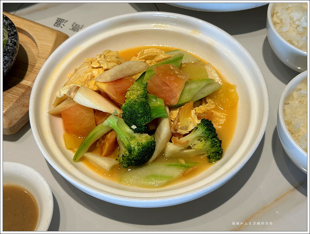 既然是2-3人份的豐盛套餐,蔬菜類也不是隨便燙個青菜就打發妳。整盤顏色漂亮有食慾,配上大火快炒出的蛋香和蔬菜,根本就是白飯殺手。