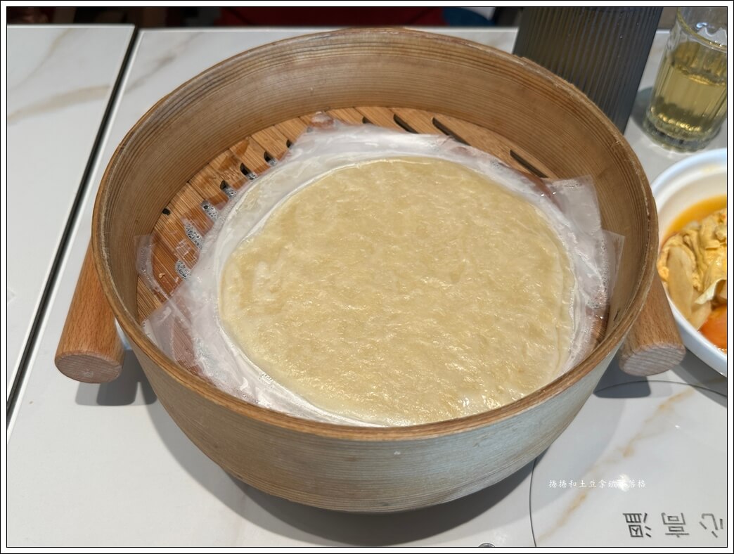 荷葉餅皮有6片,都是原味的,一張一張用蒸籠白紙隔開,方便取用,這一點太貼心。
