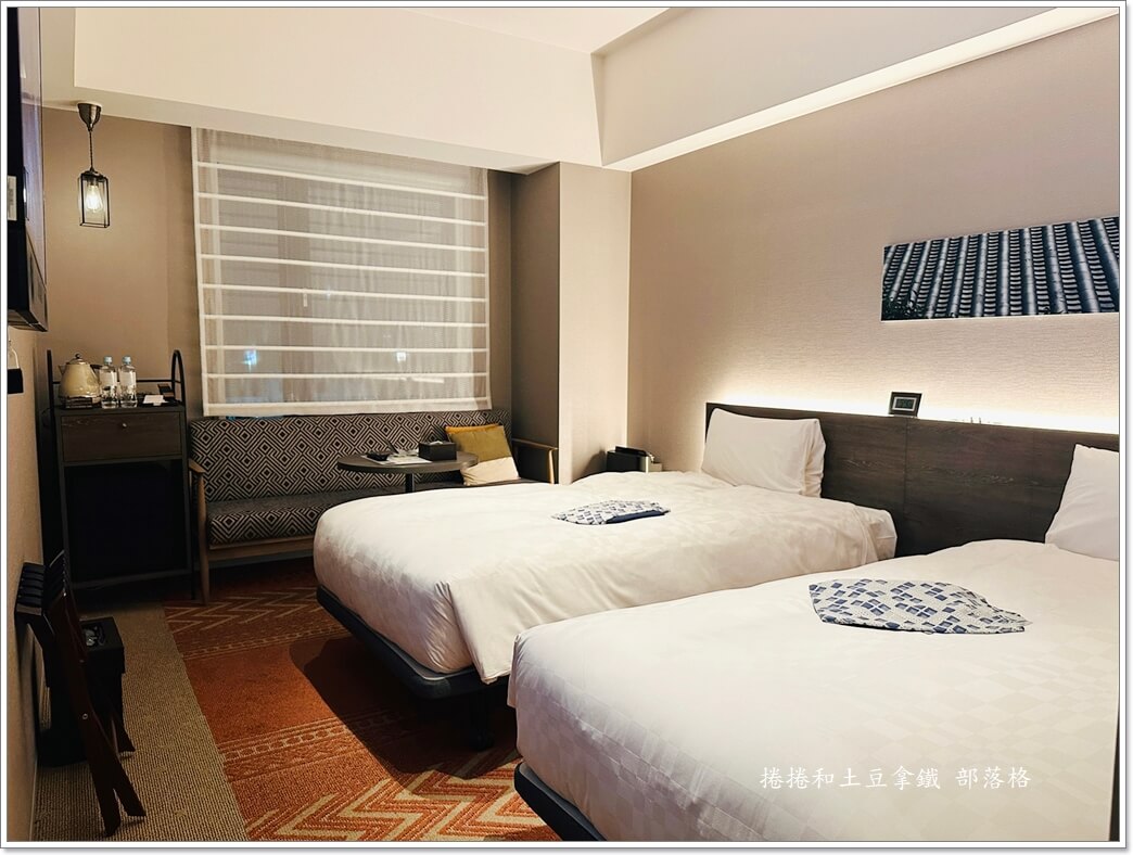 值得一提的是,飯店內部不只單純是現代設計,房內的裝飾細節也揉合了倉敷當地文化,例如採用當地傳統 倉敷丹斯特織物 的地毯圖案,還有以倉敷白壁元素打造的客房號碼牌、床飾等,讓人即使待在房間也能感受到「在地特色」的巧思。