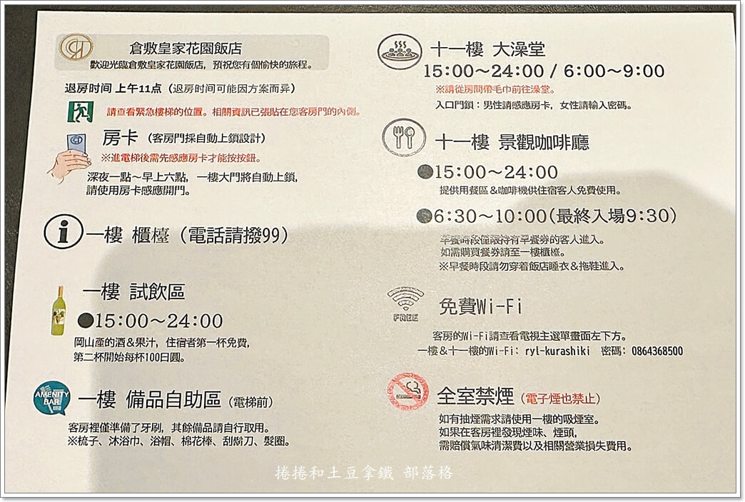 這次來到日本岡山縣的倉敷,入住了位於倉敷站周邊、靠近美觀地區的倉敷皇家公園飯店 Royal Park Hotel Kurashiki,整體住宿經驗讓人印象深刻,不僅交通方便、距離倉敷知名景點都很近,也有著舒適放鬆的住宿感受,是適合第一次造訪倉敷旅人的住宿選擇。