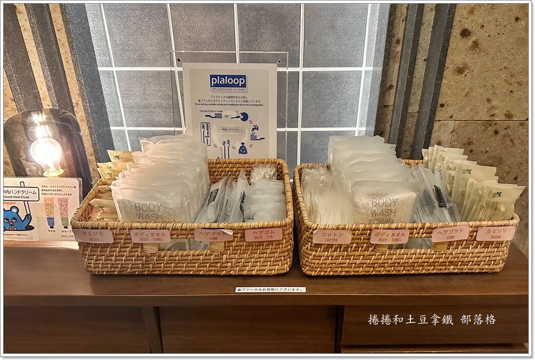 在一樓電梯旁設置備品自助區,有棉花棒、梳子、澡巾、浴帽、刮鬍刀、髮圈等。客房裡會另備有牙刷。