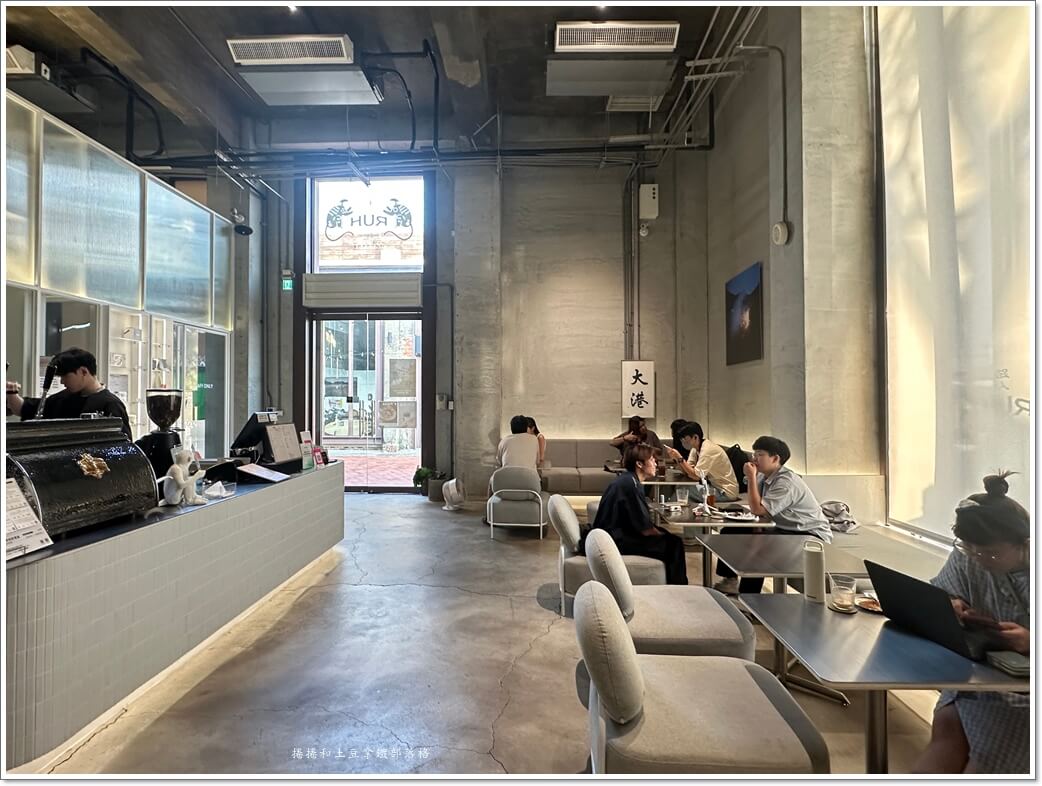 每家分店都有自己的風格,而 路人咖啡5號店特別抓住了駁二在地特色。保留了原本倉庫的工業感,灰色系、水泥地板、不銹鋼桌面,加上落地窗把海港景色盡收眼底,坐在這裡喝咖啡,感覺整個城市的喧囂都被隔開了一點。捲捲覺得,這裡不只是喝咖啡,更像是在用咖啡風味傳遞這座城市的人文氣息。