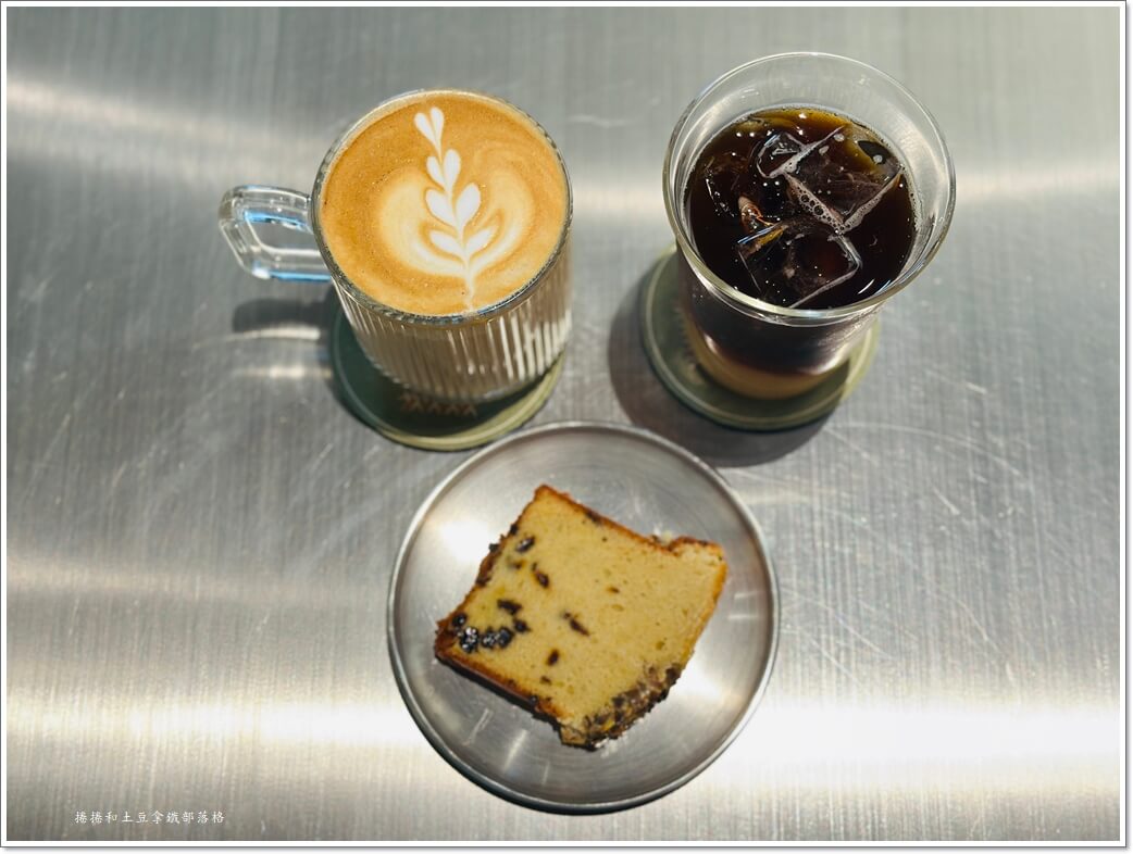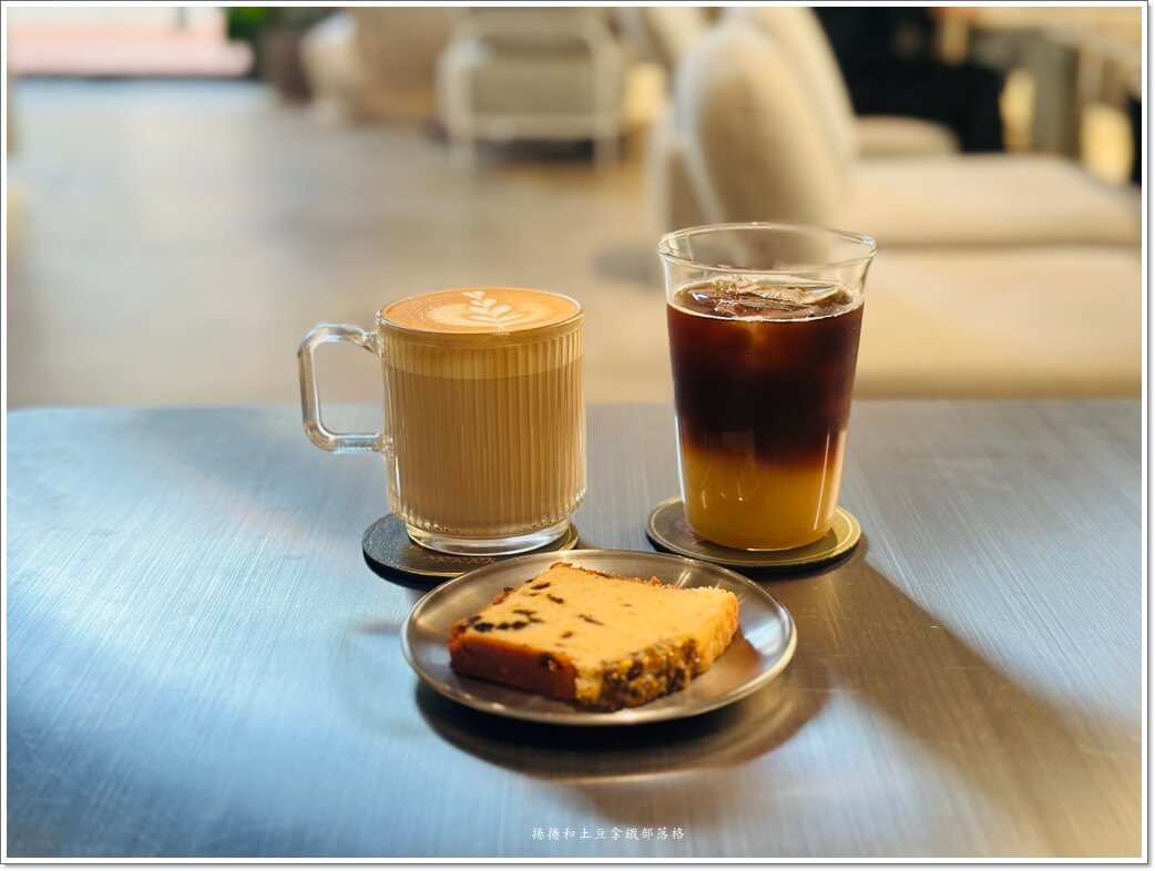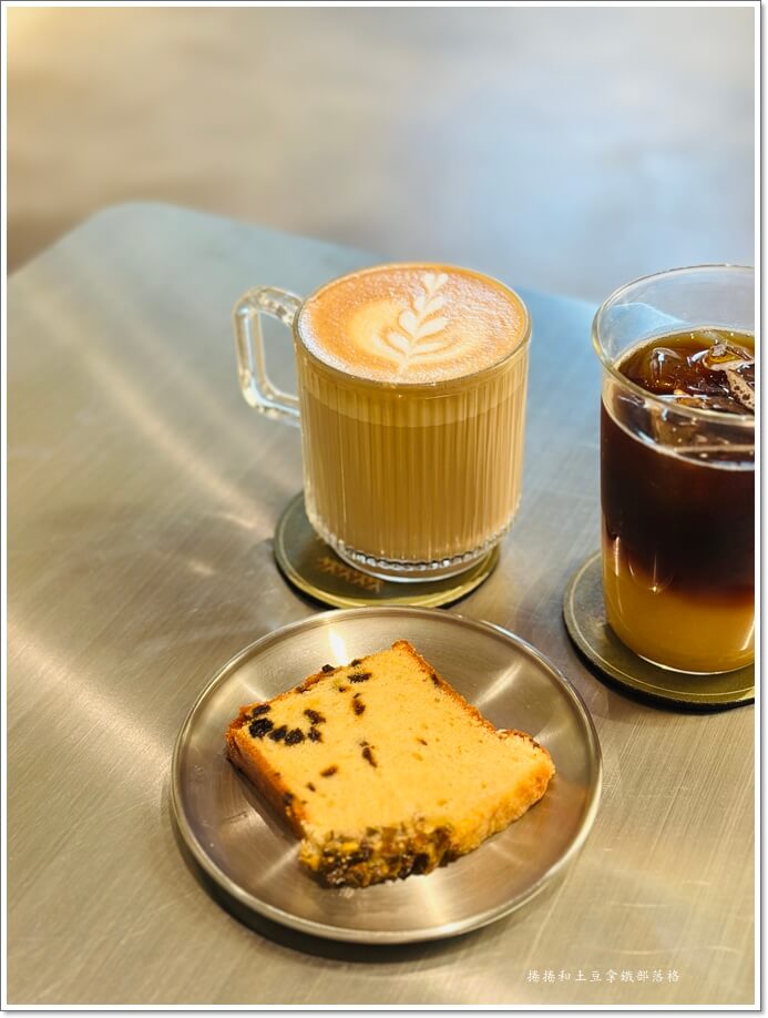 熱拿鐵、磅蛋糕、芭樂冰滴