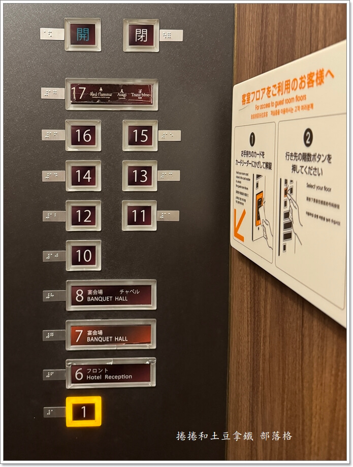 我們入住13樓邊間的位置。6樓是飯店大廳,房間位在10~17樓。