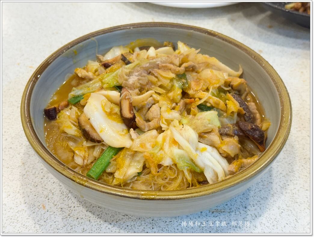 金瓜米粉。濕潤不糊、香氣濃郁,南瓜甜味完全融入米粉中,不過味道依然偏甜。