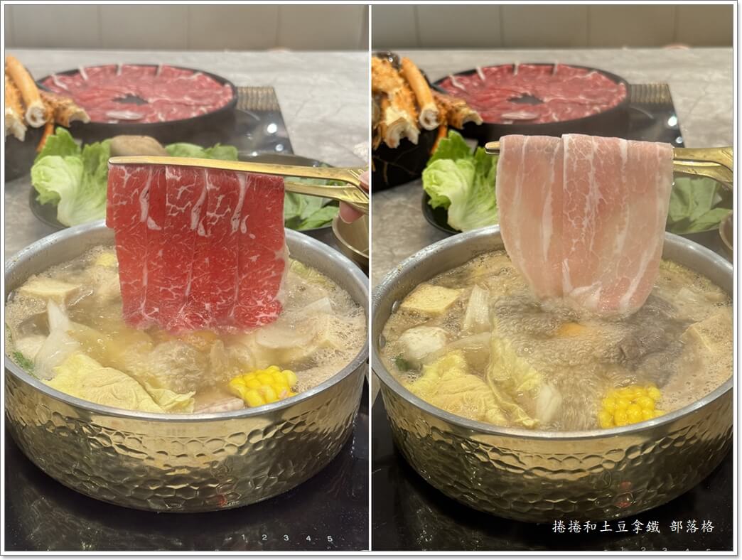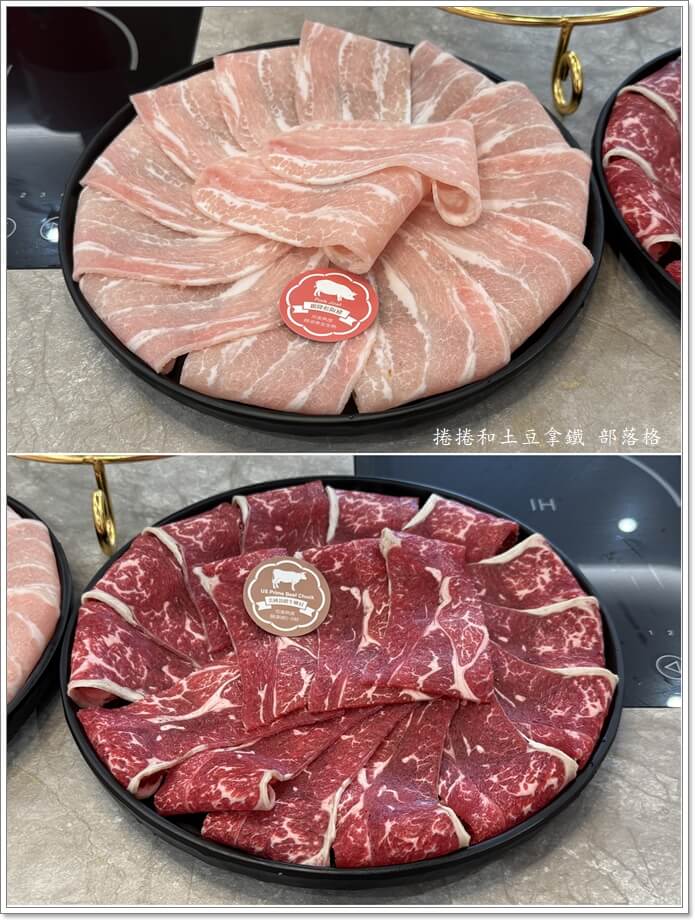 肉跟海鮮直接一次到位,美國牛五花跟嚴選豬梅花加起來就有 400 克,光肉量就已經很有誠意,對正常食量的兩個人來說,完全不用怕吃不飽。