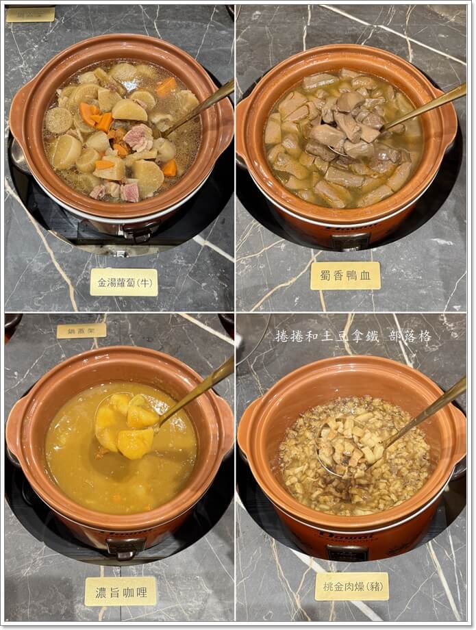 熱食區也完全不馬虎,誠意滿滿。白飯、金湯蘿蔔、咖哩、肉燥、還有超夠味的蜀香鴨血,全都無限供應,想吃多少就拿多少。
