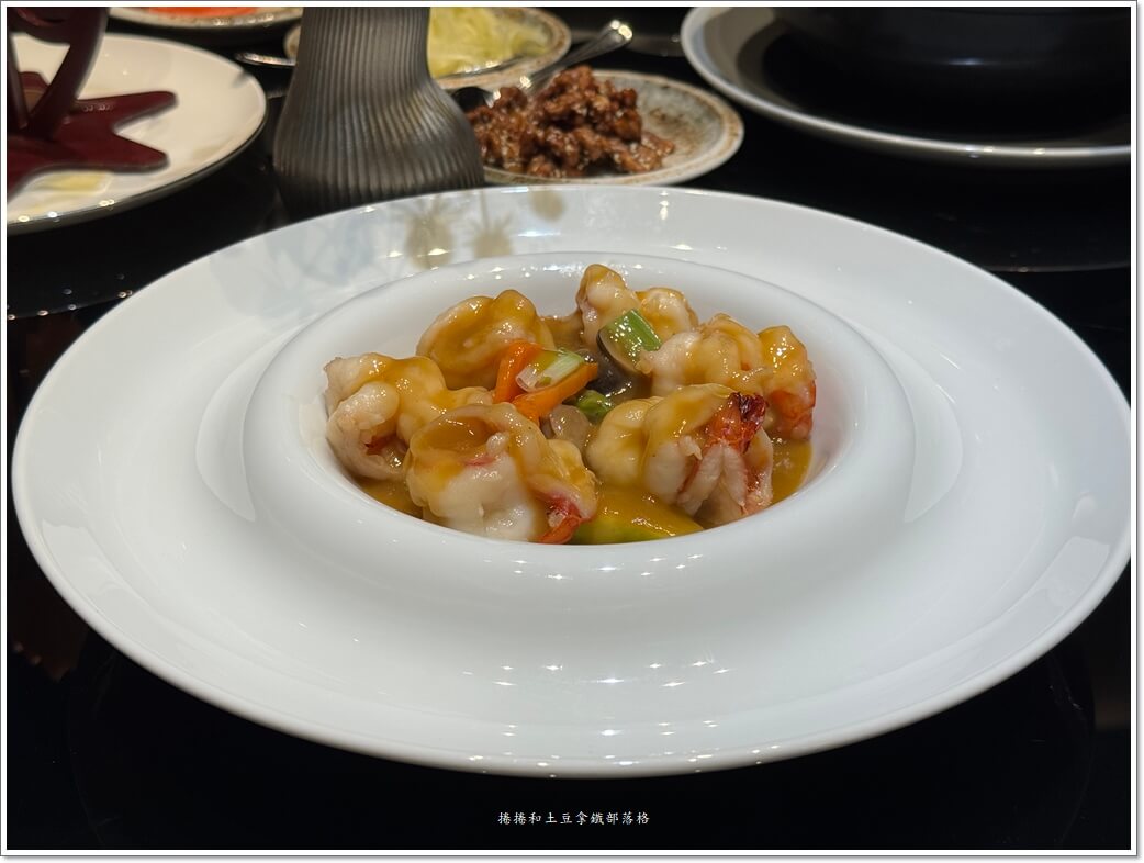 那個蝦球本人大隻又緊實,低溫油泡過後肉質彈牙到不行,配上爽口的蘆筍,乾濕交替的香氣在嘴裡炸開。那鍋湯底熬了五個小時,蝦味濃郁,這一道也是強烈建議必吃的!