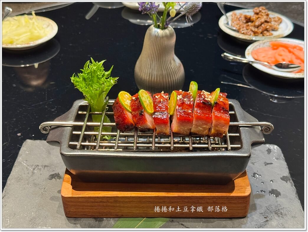 這不是你家巷口燒臘店的那種叉燒。它選用黑毛豬,用橙酒醃過再刷上蜜汁,最感人的是它竟然是用「竹炭火」慢烤的!