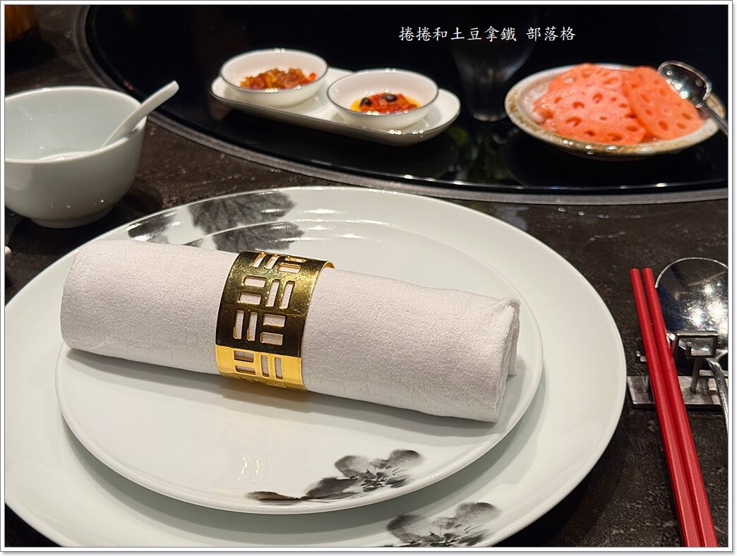 頭頂上水滴造型的吊燈閃閃發亮,搭配精緻的中式擺設,氣氛幽靜到我覺得隨便揮個袖子都能吟詩,帶長輩、親友來絕對很有面子,他們會覺得你最近是不是發財了。總之呢餐廳的氛圍能讓大家在忙碌的生活中,感受到一種優雅的慢節奏。